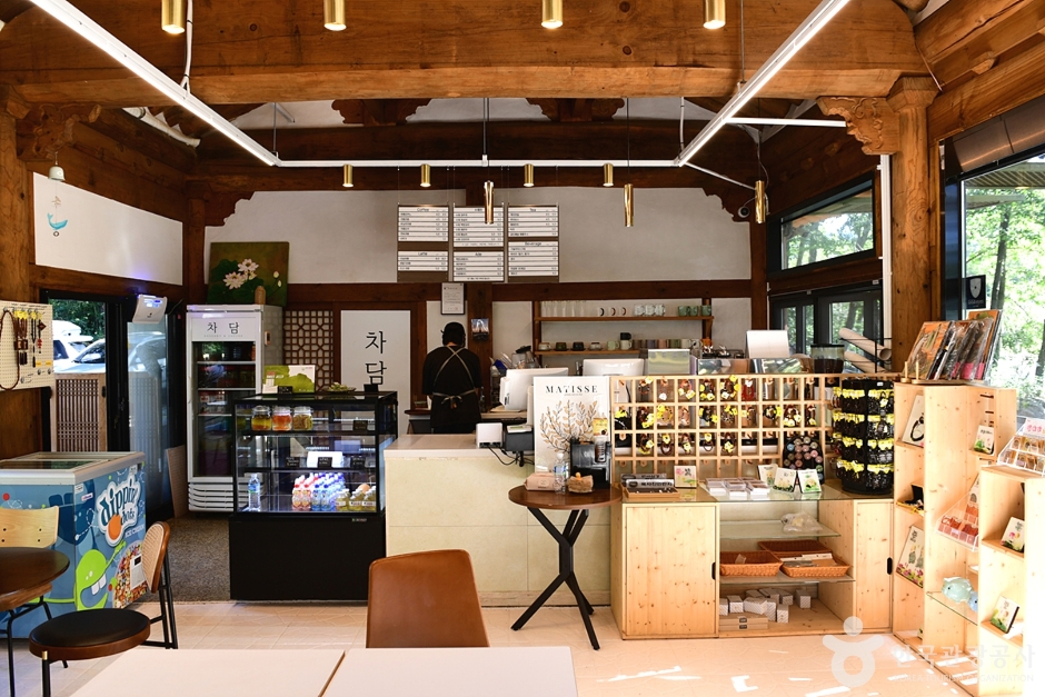 내부 인테리어는 특별한 디테일은 없으나 주변의 계절마다 바뀌는 풍경 그 자체가 인테리어와 아웃테리어를 담당하고도 남는다. 카페 차담 앞에 도갑사생태공원이 있어 함께 둘러보며 청정자연 속에서 한가로이 차 한잔 하는 것도 추천할만하다.