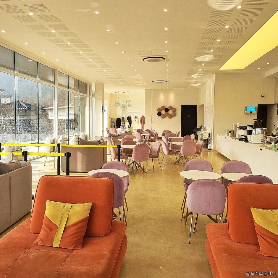 수원시 권선구 호매실동의 칠보 자목 마을 음식 문화거리쪽에 있으며, 칠보산의 자연을 누리는 카페이다. 건물의 외관이 깔끔하다. 주차장이 넓으며, 들어가는 입구는 자갈밭과 인공 연못, 빈백의자가 놓인 야외테라스가 있다. 실내는 흰색의 인테리어와 통유리로 답답하지 않으며, 창밖의 칠보산과 하늘, 넓은 자갈밭을 볼 수 있다. 자연과 어우러진 정원은 포토존이다. 커피가 인기 있는 메뉴인데 일리 원두를 사용하며, 일리 원두를 판매하고 있다. 또한 다양한 음료와 샌드위치를 판매한다. 조각 케이크와 여러 종류의 쿠키, 스콘 등이 있다. 한쪽에는 여성 의류를 판매하는 코너가 있다. 단체석이 있어 모임을 하기에도 좋다.