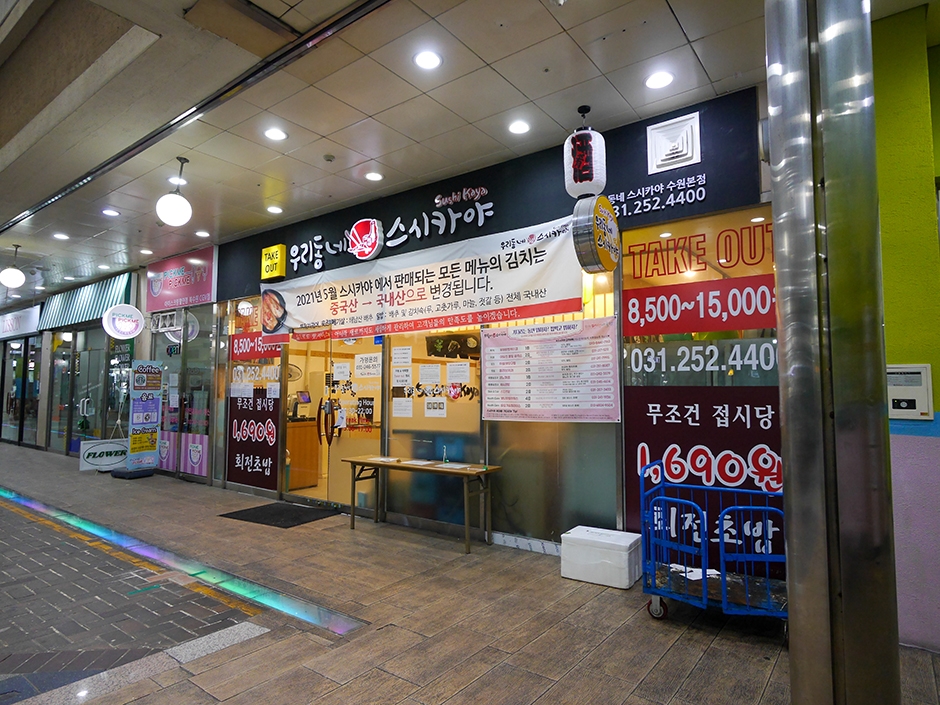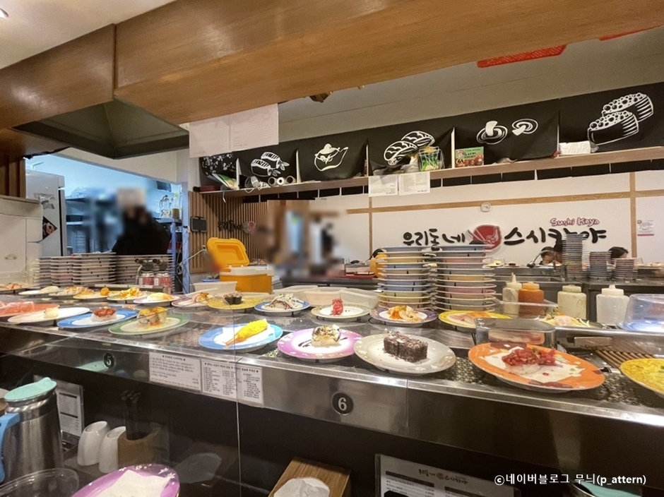 우리 동네 스시카야는 회전 초밥집이다. 오랜 경력의 주방장이 즉석에서 만드는 초밥을 맛볼 수 있다. 최고급 국내산 쌀만을 사용하며 매일 들어오는 광어와 노르웨이산 생연어, 싱싱한 활어를 사용한다. 내부에는 회전 레일을 놓고 둘러앉을 수 있는 바 자리와 여럿이 앉을 수 있는 테이블로 구성되어 있다.