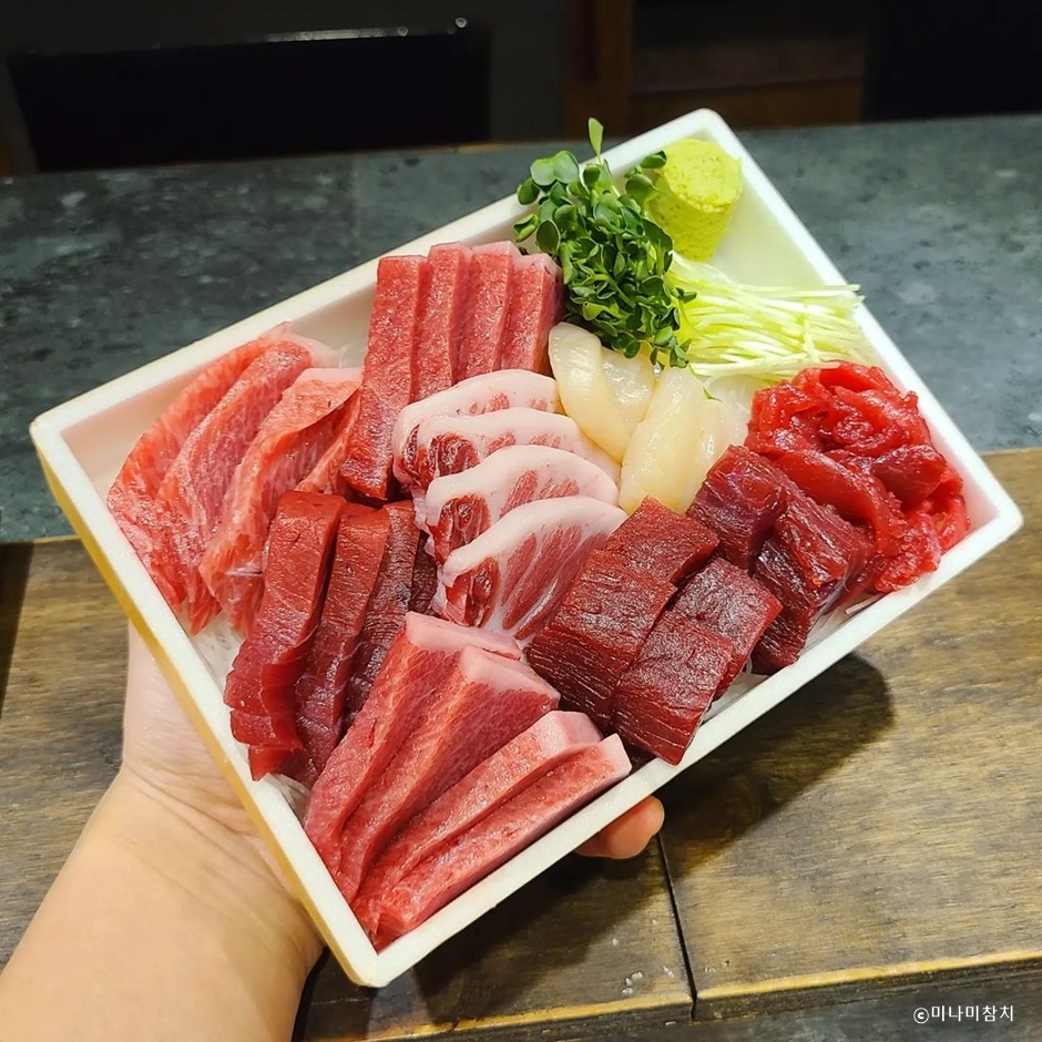 미나미참치는 수원시 팔달구 인계동, 효원공원 앞 나혜석 거리에 있는 생참치 전문점이다. 건물 뒤편으로 주차장이 있고 만차 시 효원공원 공영주차장을 이용하면 된다. 일본식 식당 느낌으로 문 옆으로 참치를 직접 확인할 수 있는 진열대가 있다. 평일에도 예약 없이 방문하면 자리가 없을 정도로 유명한 곳으로 조용히 식사를 할 수 있는 룸과 테이블, 바로 구성되어 있다.