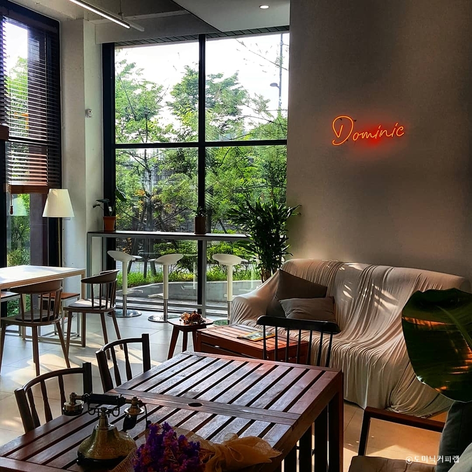 도미닉커피랩은 광교 카페거리에 있는 카페이다. 층고가 높고 깔끔한 매장에는 테이블이 여유롭게 배치되어 있다. 2021년 기술평가 우수 인증기업으로 선정된 이곳은 직접 원두를 로스팅하여 납품 및 판매하고 있다. 근처 신분당선 광교중앙역이 있어 대중교통으로 이용할 수 있고 반려동물을 동반할 수 있다.