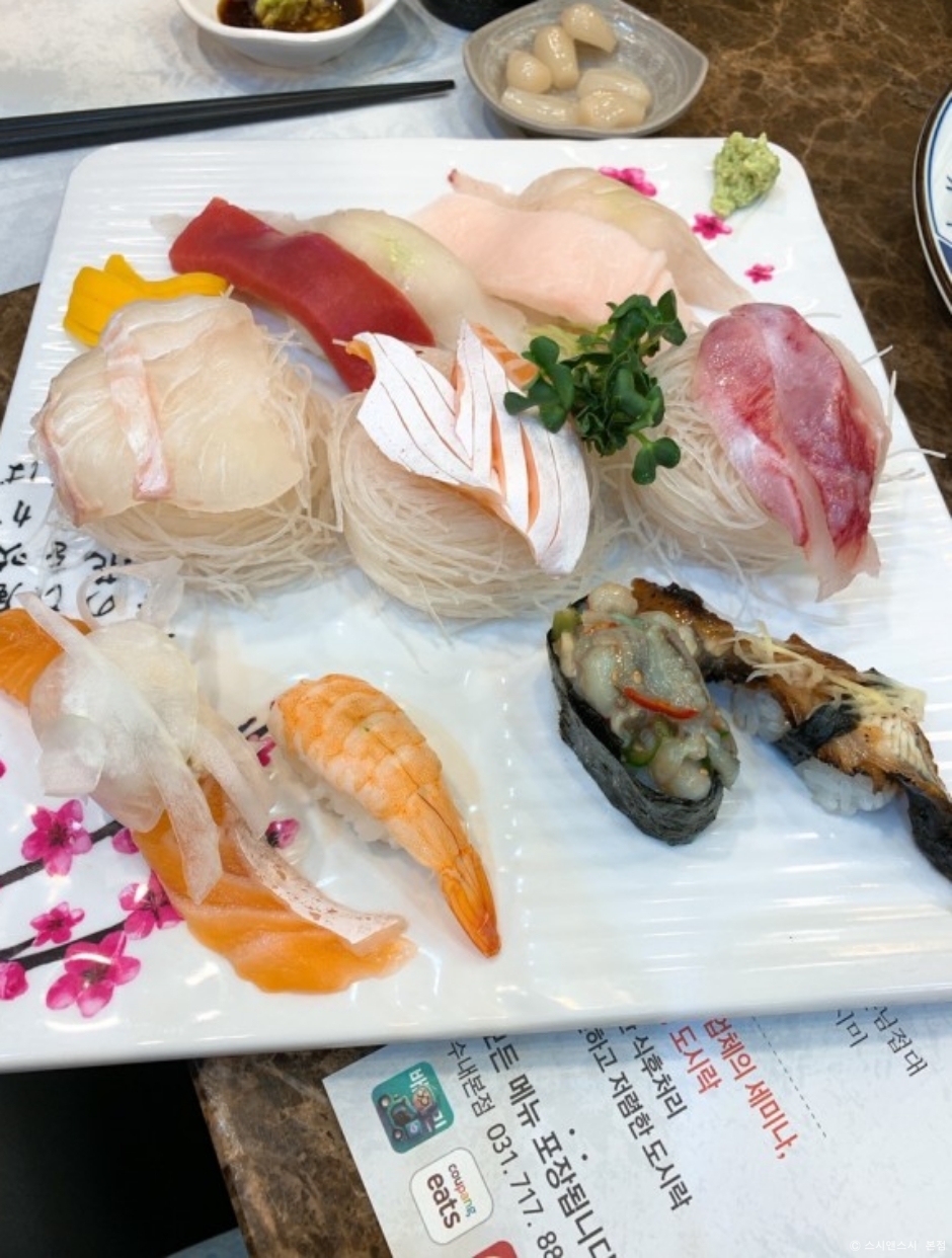 스시앤스시 본점은 경기도 성남시 수내역 근처에 있는 회전 초밥집이다. 수내역 본점 이외에도 서울과 용인, 대구에 지점이 있다. 수내역 2번 출구에서 도보로 5분 정도 거리이다. 매장은 층고가 높으며 넓고 실내가 밝아서 고급스러운 분위기이다. 회전 초밥 외에도 점심과 저녁 세트 메뉴가 있다. 자리에 앉으면 장국, 흑임자죽, 샐러드, 와사비가 기본으로 세팅되어 있다. 가게 내에서 먹는 것뿐 아니라 배달 또는 포장도 할 수 있다. 카운터 옆 쇼케이스에 포장과 배달 가능한 메뉴들을 전시하고 있다.