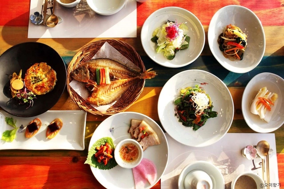 오이향기는 전류리포구 부근에 있는 한정식 전문점이다. 골목길을 조금 올라오면 숲 속에 간판과 함께 식당이 모습을 보인다. 다양한 나무가 식당 입구를 덮고 있어 정원에 있는 듯 차분하고 안정적인 분위기가 느껴진다. ?넓은 실내와 야외 좌석이 마련되어 있다. 숙주나물, 브로콜리, 멸치, 김치, 장아찌, 시금치 등 6가지 기본 반찬과 함께 샐러드부터 9가지 종류의 코스 요리가 나온다. 메뉴는 보리굴비 정식과 보리향기 코스, 오이 향기 코스가 있고 단품 요리를 먹을 수도 있다. 아늑하고 조용하여 가족 모임, 상견례 장소로 적합하다.