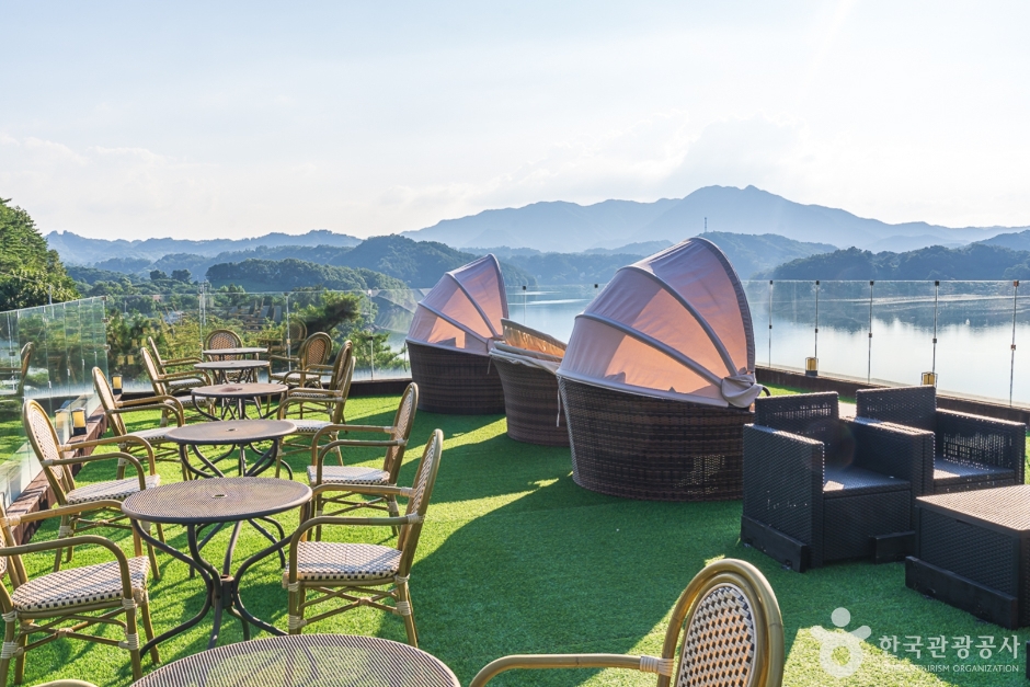 3면이 유리로 되어 있어 주변의 탁 트인 풍경을 온전히 즐길 수 있으며, 야외 테이블까지 마련되어 있어 아름다운 풍경과 자연의 바람을 느낄 수 있는 곳이다.