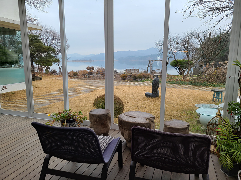 소정의 입장료를 내면 커피나 음료 한 잔이 제공된다. 팔당 호수를 앞마당 삼아 수목원처럼 넓은 정원에 온갖 나무와 들꽃이 계절마다 다른 색깔을 선물한다. 카페에서 바라보면 호수 건너편과 호수에서 두 개의 해와 달이 뜬다. 카페 옆 언덕 숲 속으로 작은 오솔길이 이어지고 1km에 달하는 구불구불 산책로가 있다. 한지를 이용해 그림, 소품, 가구 등 다양한 작품을 만드는 김정식 작가가 운영하는 갤러리 카페이다.