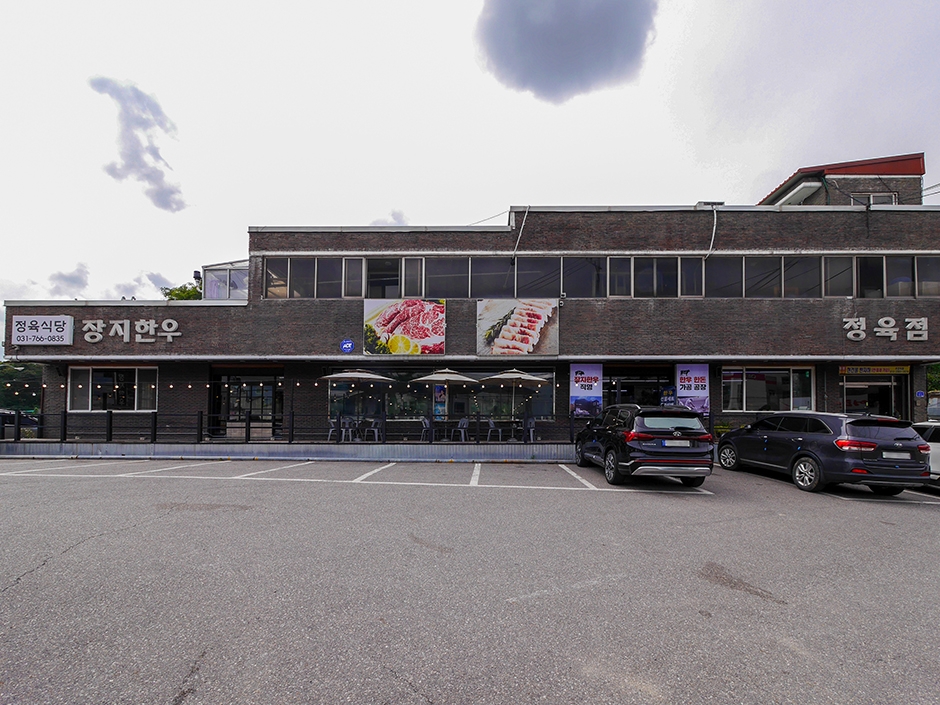 장지한우는 경기도 광주시 장지동 신장지 사거리 근처에 있는 정육식당이다. 단독건물로 매장 앞에 넓은 주차장이 있어 편하게 주차할 수 있다. 층고가 높고 깔끔한 매장 내부에는 테이블이 많이 구비되어 있다. 이곳은 고기를 정육 판매대에서 직접 구매 후 식당에서 상차림 추가 요금을 내고 식사를 하는 곳이다. 매장 한쪽에는 셀프바가 준비되어 있어 기본 상차림 후 추가 반찬, 술, 음료 등은 셀프로 이용하면 된다. 이 식당은 한우 한돈 가공공장 직영점으로 저렴한 가격에 한우, 한돈과 수입고기를 맛볼 수 있다. 또한 고기 외에 갈비탕, 우거지탕 등 식사류가 준비되어 있고 매장에 나오는 반찬들을 포장하여 판매도 하고 있다.