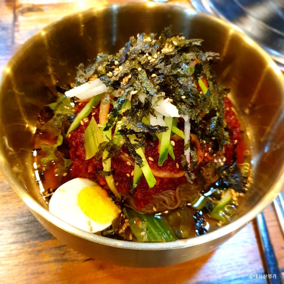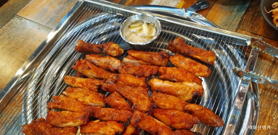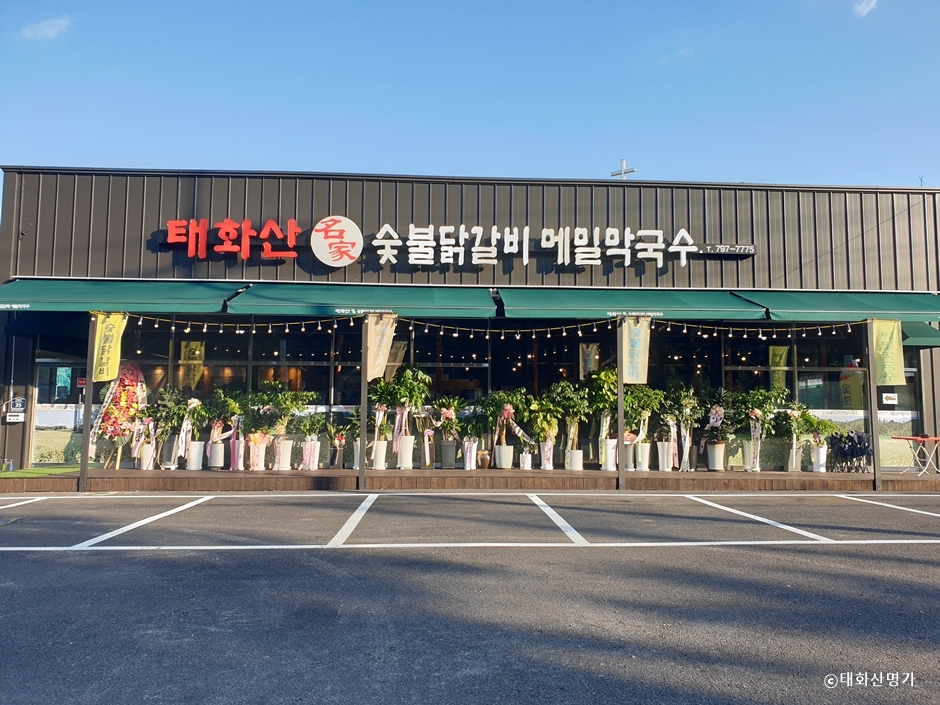 태화산명가는 경기도 광주시 곤지암 도자공원 근처에 있는 숯불 닭갈비 전문점이다. 단독 건물로 매장 앞에 주차할 수 있다. 넓고 깔끔한 매장 안에는 테이블이 많이 있고 여유롭게 배치되어 있다. 이곳은 농림축산식품부 제공 안심식당으로 숯불닭갈비와 비빔막국수 전문점이다. HACCP 인증 냉장 닭을 사용하여 초벌 되어 나오는 닭갈비는 소금구이와 양념구이가 있고 직원이 직접 구워줘서 편하게 식사할 수 있다. 비빔막국수는 조미료가 첨가되지 않은 이곳만의 비법 양념과 함께 나온다. 이 밖에 냉모밀, 메밀전병, 사골메밀만둣국이 있다. 정갈하고 깔끔한 기본 반찬이 제공되고 추가 반찬은 매장 한쪽에 준비된 셀프 바를 이용하면 된다. 닭갈비를 추가하거나 포장을 원한다면 초벌 시간을 감안해서 미리 주문해야 한다.
