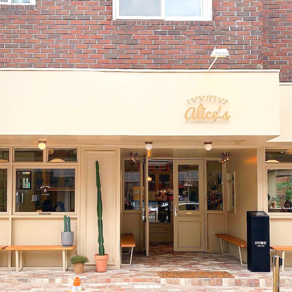 일산 밤가시마을(일명 밤리단길)에 있는 앨리스 케이커리는 케이크 맛집이다. 아담한 외관은 크림색의 감성적인 디자인이고 내부 인테리어는 우드를 기본으로 하여 빈티지하고 앤틱한 소품을 잘 활용하여 꾸며 놓았다. 넓고 큰 창문을 통해 보이는 파릇한 식물과 따스하게 들어오는 햇살이 사진찍기에 좋다. 쇼케이스 안에는 십여 가지 케이크가 들어 있는데 매일매일 케이크 라인업이 달라지고 매장 인스타그램에 그날그날 업데이트된다. 쌀로 케이크를 만들어서 많이 달지 않고 제철 과일로 토핑한 제철과일케이크도 판매되고 있다. 주차 공간은 많지 않고 가게 앞에 하면 된다.