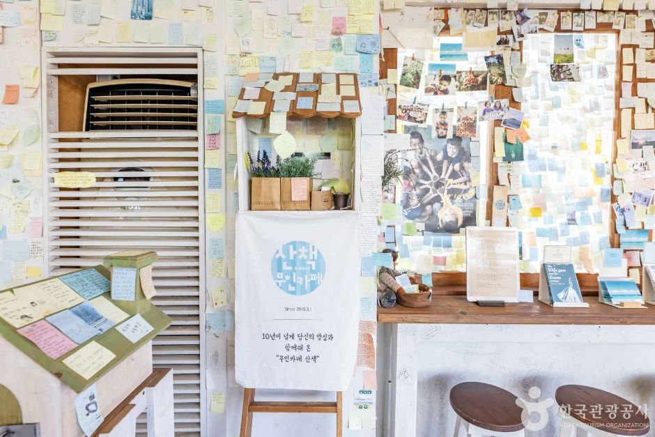 애월읍 고내리 고내포구 앞에 있는 작은 무인카페이다. 카페 인근의 고내포구는 올레 15코스의 마지막 지점이자 16코스의 시작점이다. 무인카페 산책은 가게에 주인이 없는 카페로써, 자유롭게 카페를 이용하고 이용료를 지불하고 가면 된다. 이곳에 비치된 각종 차는 전부 유기농으로 준비되어 있고, 커피 또한 공정무역으로 거래된 유기농 커피만을 사용하고 있다.