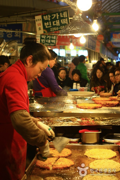 광장시장에 위치한 박가네 빈대떡은 100% 녹두를 맷돌에 직접 갈아서 사용하여 더욱더 고소한 맛을 내는 빈대떡 전문점이다. 주문 즉시 대형 전판에 넉넉하게 두른 기름에서 부쳐내기 때문에 따뜻하고 바삭한 빈대떡을 맛볼 수 있다. 모듬전, 육전, 육회 등 전통시장의 정취를 느낄 수 있는 여러 가지 메뉴도 준비되어 있다. 단체 좌석도 구비되어 있어 친구들과 모임, 회식 등을 즐기기에도 좋다.