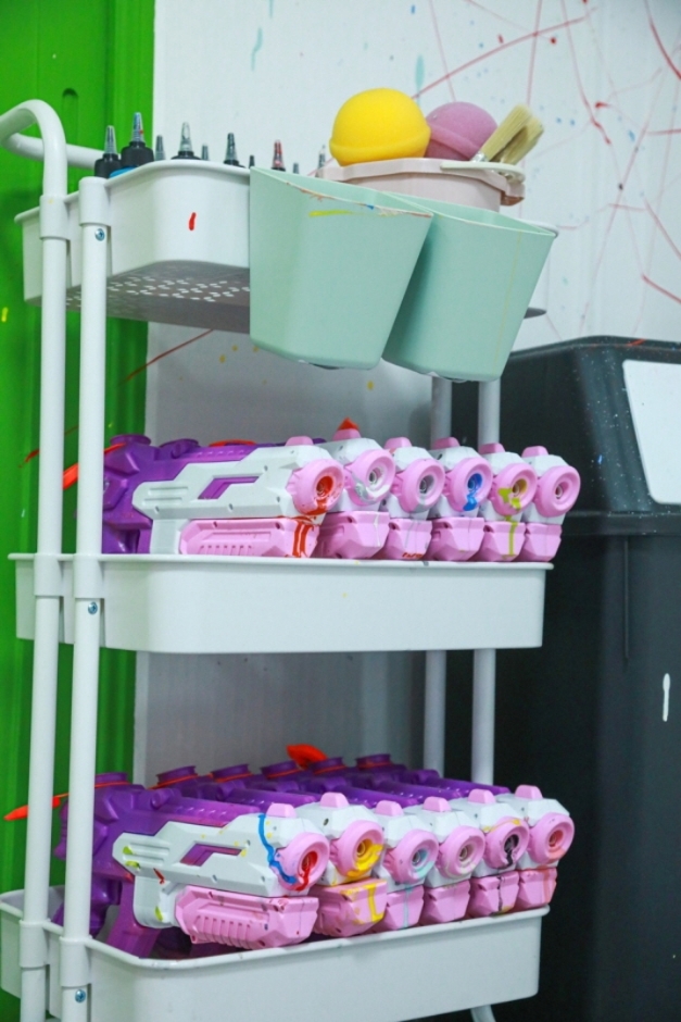 부산광역시에 위치한 아트모이지는 부산 최초의 페인팅건 체험 공방이자 드로잉 카페 공방이다. 각종 체험도구(물총, 소스통, 스펀지, 아크릴붓, 페인트붓 등)를 사용하여 원하는 색상으로 8호 캔버스를 꾸미는 페인팅건 체험, 나이프를 이용해 모델링 페이스트와 아크릴 물감을 섞어 캔버스 표면에 질감을 주는 백드롭 페인팅 체험, 원하는 도안을 선택하여 캔버스에 아크릴 물감으로 색칠하는 드로잉 체험을 이용할 수 있다. 기본적으로 필요한 미술물품 외에도 다양한 도구와 촬영소품 등을 마음껏 이용할 수 있으며 친환경 페인트와 수성도료를 사용하여 냄새가 거의 없이 안전하게 이용이 가능하다. 또한 까다롭게 선별한 원두로 내린 커피와 각종 음료 및 디저트를 함께 즐길 수 있다.