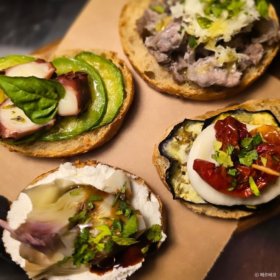 대표 메뉴로는 치케티(Cicchetti)로 베네치아 공국 시절부터 수백 년 역사가 깊은 베네치아를 대표하는 음식이다. 납작한 빵 위에 해산물 등 여러 재료들을 얹어 먹는 형태이다. 또한 오징어튀김, 멸치튀김 등 각종 튀김 종류도 판매한다. 이탈리아 베네치아의 음식 문화를 몸소 느낄 수 있는 음식점이다.