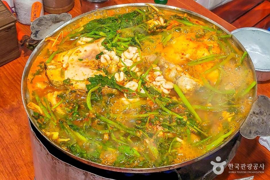 얼큰하고 시원한 대구탕 국물이 일품이며 대구와 함께 콩나물과 미나리의 맛이 국물에 우러나도록 푹 끓여먹으면 예술이다.