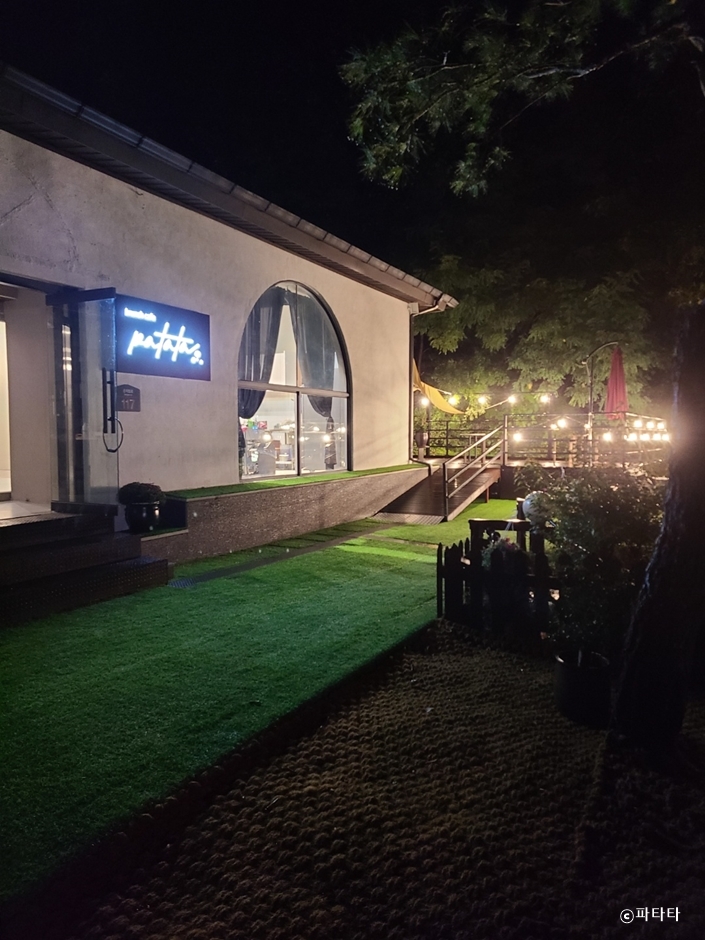 파타타는 경기도 광주시 곤지암 근린공원 근처에 있는 브런치 카페이다. 건물 앞에 전용 주차장이 있어 편리하다. 층고가 높고 넓은 내부는 깔끔하게 꾸며져 있고 테이블이 여유롭게 배치되어 있다. 건물 옆으로 인조 잔디가 깔린 야외 테이블이 있어 많은 인원을 수용할 수 있다. 대표 메뉴는 에그 포테딕트, 페타치즈 오일 파스타, 프렌치토스트 등의 다양한 브런치와 15시 이후부터 주문할 수 있는 감바스, 찹스테이크, 훈제 치킨 등의 저녁 메뉴가 있다. 음료는 커피, 에이드, 허브티, 맥주 등이 있고 브런치 메뉴 주문 시 커피 종류는 할인된다. 주문은 선결제이고 음료나 음식은 카운터에서 직접 받아 가면 된다. 파타타는 가족 손님을 위해 아기 의자도 준비되어 있고 반려동물은 실내, 실외 어디든 동반할 수 있지만 실내의 경우 켄넬이나 유모차를 사용해야 한다.