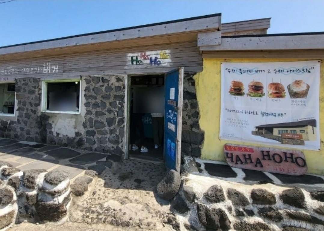 하하호호는 하우목동항에서 북쪽으로 해안도로를 따라가면 있다. 2011년부터 흑돼지 버거를 판매하여 흑돼지 버거 맛집으로 소문이 났고, 올리브TV, 생생정보통 등 여러 미디어에 소개되었다. 돌집을 개조한 작은 수제 햄버거집으로 제주 본섬의 하도리가 보이고, 해 질 녘에는 노을이 아름답다. 내부 인테리어는 돌과 나무가 조화를 이루며 빈티지 하고, 야외 테이블 공간도 있다. 근처 여행지로 제주 우도 홍조단괴 해빈, 하고수동해수욕장 등이 있다.