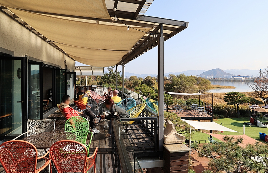 애니메이션 박물관 옆 의암호변에 있다. 의암호 뷰가 멋지고, 바로 호숫가에서 편하게 차를 즐길 수도 있다. 기존에 박물관이었던 3층 건물을 리모델링했으며, 1층은 뮤직홀 겸 휴게실, 2층은 카페, 3층은 테라스로 꾸몄다. 특히 건물 앞 강변 1,500m²가 넘는 공간에 인조 잔디를 깔고 야외 소파를 설치해 놓았다. 2층 카페도 빈티지 분위기를 살린 개방형 구조로 모든 곳에서 강을 바라보며 브런치와 음료를 즐길 수 있다. 특히 주말에만 제공되는 새우 크레프 샌드위치와 허니 더블 햄 치즈 파니니가 인기 있다.