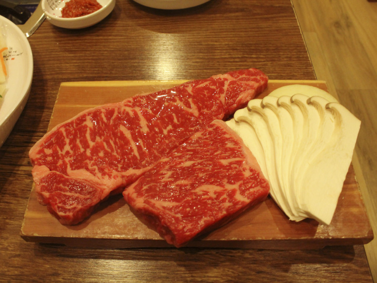 적당히 익은 고기는 철판 위에 올려 주어 식지 않고 마지막 한 점까지 즐길 수 있다.