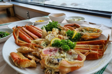 황가네찜은 강원도 속초에 있는 생선 모둠 찜, 가오리찜 전문 식당이다. TV 프로그램 3대 천왕에 소개된 바 있으며 바다를 전망할 수 있는 뷰 맛집이기도 하다. 메뉴는 생선 모둠 찜과 가오리찜을 특대, 대, 중, 소로 나누어 판매한다. 생선 모둠 찜에는 가오리, 갈치, 가자미, 코다리가 나오는데 계절에 따라 제철 생선으로 변경된다. 달큰한 무와 포슬포슬한 감자를 넣어 매콤달콤한 양념에 쪄낸 생선이 맛깔스럽다. 널찍한 내부에 단체로 찾아도 넉넉한 좌석을 갖추고 있다. 주차는 매장 앞에 편하게 할 수 있다.