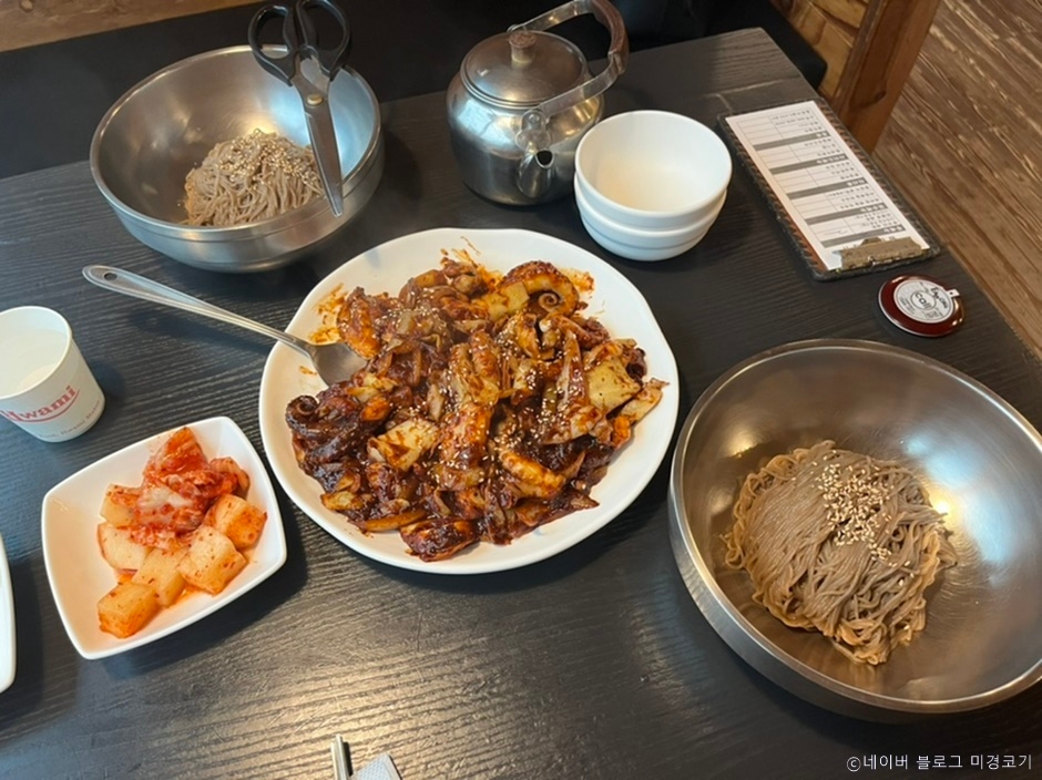 황촌집은 강화도 초지대교 건너기 전에 있는 메밀국수 전문 식당이다. , <생생정보>, <생방송오늘저녁> 등에 소개된 소문난 맛집이기도 하다. 식당 안으로 들어서면 우드로 전체 인테리어가 되어 있어 따듯한 느낌이 든다. 주메뉴는 주꾸미 또는 삼겹살과 함께 메밀국수, 보리밥과 함께 제공되는 세트 메뉴가 있다. 그 외 왕갈비탕과 돈가스, 새우튀김, 냉면 등의 단품 메뉴를 먹을 수도 있다. 일부 타 업소에서는 볶음 시 인체에 해로운 목초액으로 불맛을 낸다고 하는데 이 식당은 손님의 건강에 해로운 목초액은 전혀 사용하지 않는다.