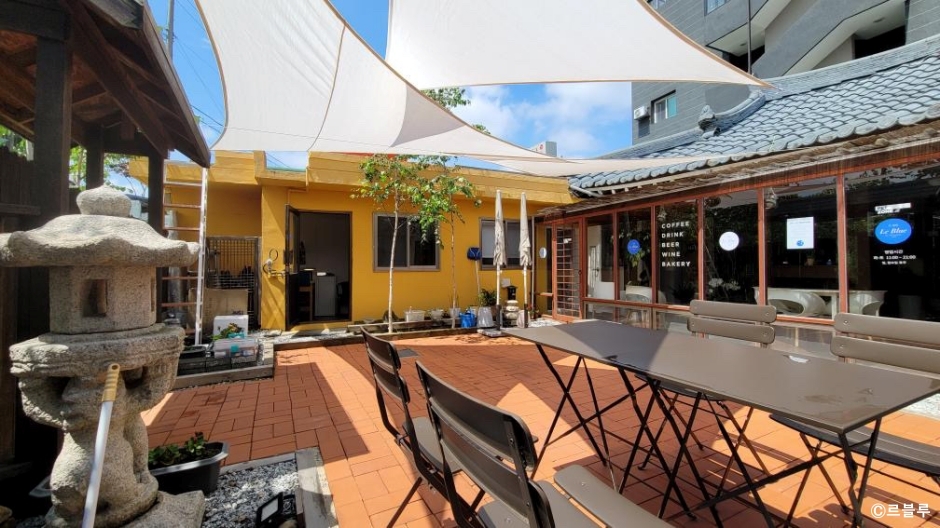 르 블루는 파랑이란 뜻을 가진 베이커리 팝으로 강원도 강릉시 성남동에 있다. 커피와 음료는 기본이고 다양한 베이커리 제품과 수제 샌드위치를 팔고 있다. 더불어 와인과 맥주로 마실 수 있는 한옥 베이커리 팝이다. 분위기 좋은 곳에서 한잔하고 싶을 때 맞춤인 곳으로 오래된 한옥을 현대식으로 개조해서 식당으로도 카페로도 술집으로도 잘 어울린다. 빵을 만드는 모든 재료는 프랑스에서 수입한 유기농 제품을 사용한다. 야외석이 있어 한옥 마당에 앉아 편안함을 느낄 수도 있다. 반려동물과 함께 여행을 왔다면 편하게 동반 입장할 수 있다. 주차는 불가능해 주변 공영주차장을 이용해야 한다.