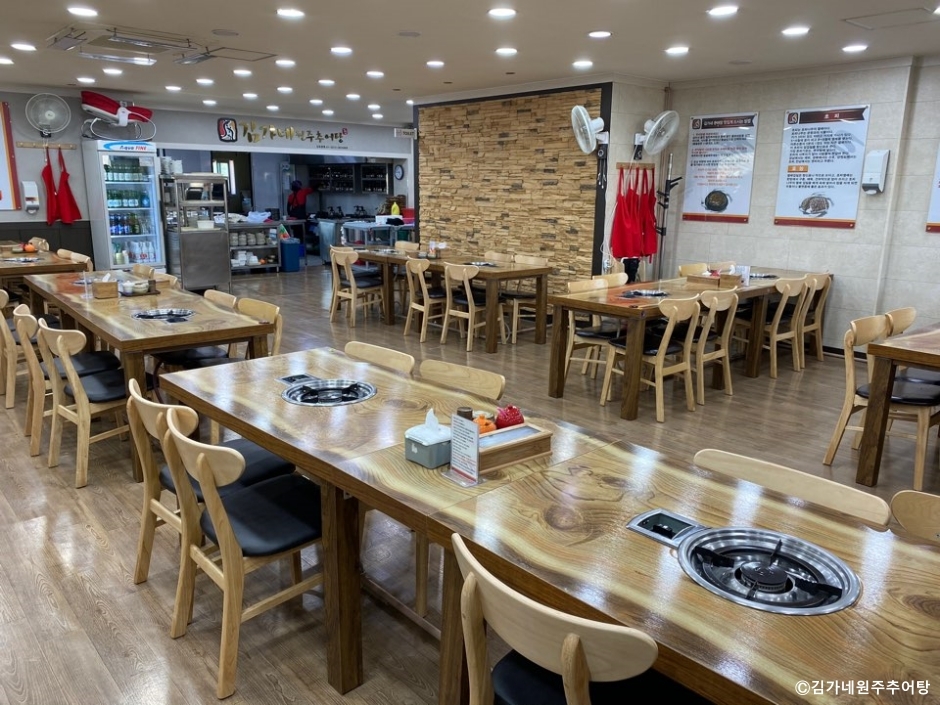 김가네원주추어탕은 강원도 원주시에 있는 원주 향토 음식 추어탕 전문점이다. 원주 추어탕은 다른 지역과 다르게 테이블에서 끓여 먹으면서 수제비를 넣어 먹는다. 다른 지역보다 매운맛도 더 있는 편이다. 추어탕은 갈아서 만든 것과 통으로 넣은 것을 별도로 판매한다. 좀 더 매운맛을 내는 얼큰이 추어탕도 있다. 밥은 공깃밥과 돌솥 밥을 선택할 수 있다. 지역 맛집이기도 하고 전국에서 손님들이 찾는 맛집이기도 하다. 근처에 사는 현지인을 위해서는 포장 창구를 별도로 두고 포장 판매를 하고 있고, 타 지역인에게는 택배 서비스를 하고 있다. 매장 건너편에 넓은 전용 주차장이 있어 이용이 편리하다.