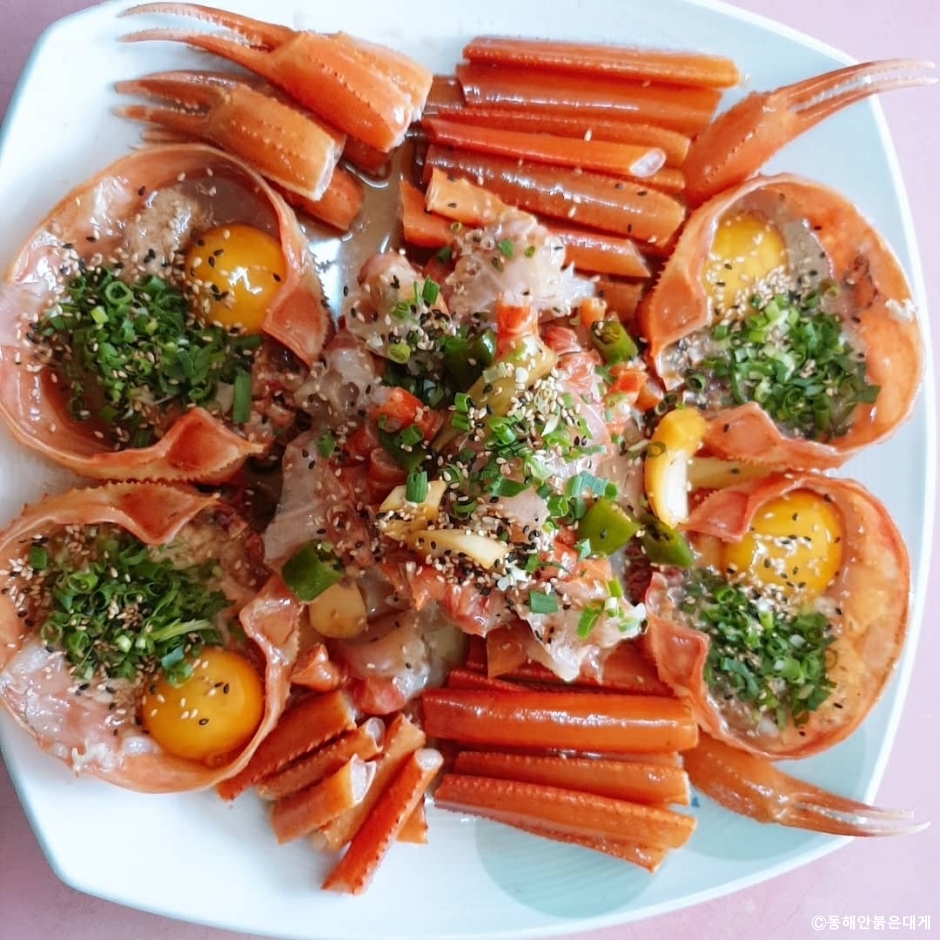 동해안붉은대게는 강원도 속초시 조양동에 있는 홍게요리 전문점이다. 홍게와 대게로 다양한 음식을 준비하는데 대표 메뉴는 홍게 간장게장이고 이 밖에 홍게 찜, 홍게 라면, 홍게 탕과 오징어순대, 볶음밥 등이 있다. 홍게 간장게장을 시키면 두부조림, 감자조림, 고사리나물, 김치 등의 밑반찬과 미역국을 곁들인 한상을 차려 준다. 홍게는 1인분에 한 마리가 나오는데 먹기 좋게 손질을 해서 예쁘게 담아준다. 게딱지 안에는 달걀노른자, 쪽파, 참기름, 깨소금이 들어 있어 밥을 비벼 먹을 수 있다. 주차는 속초해수욕장 제1주차장이 있어 무료로 사용할 수 있다.