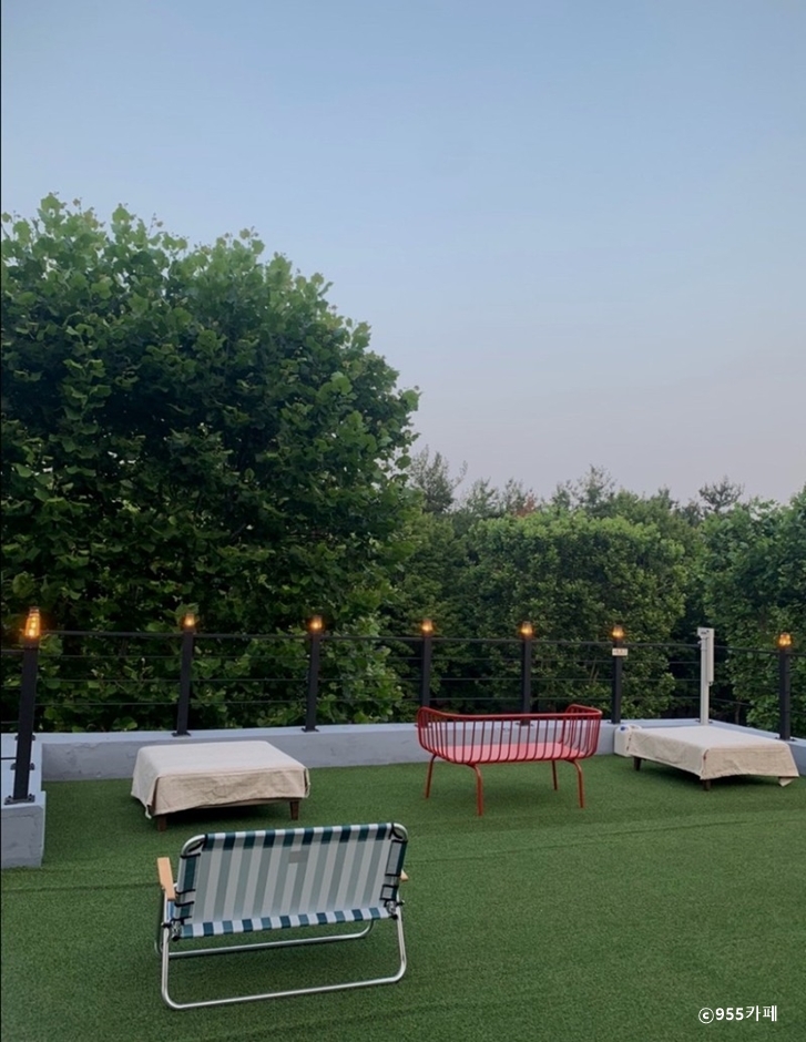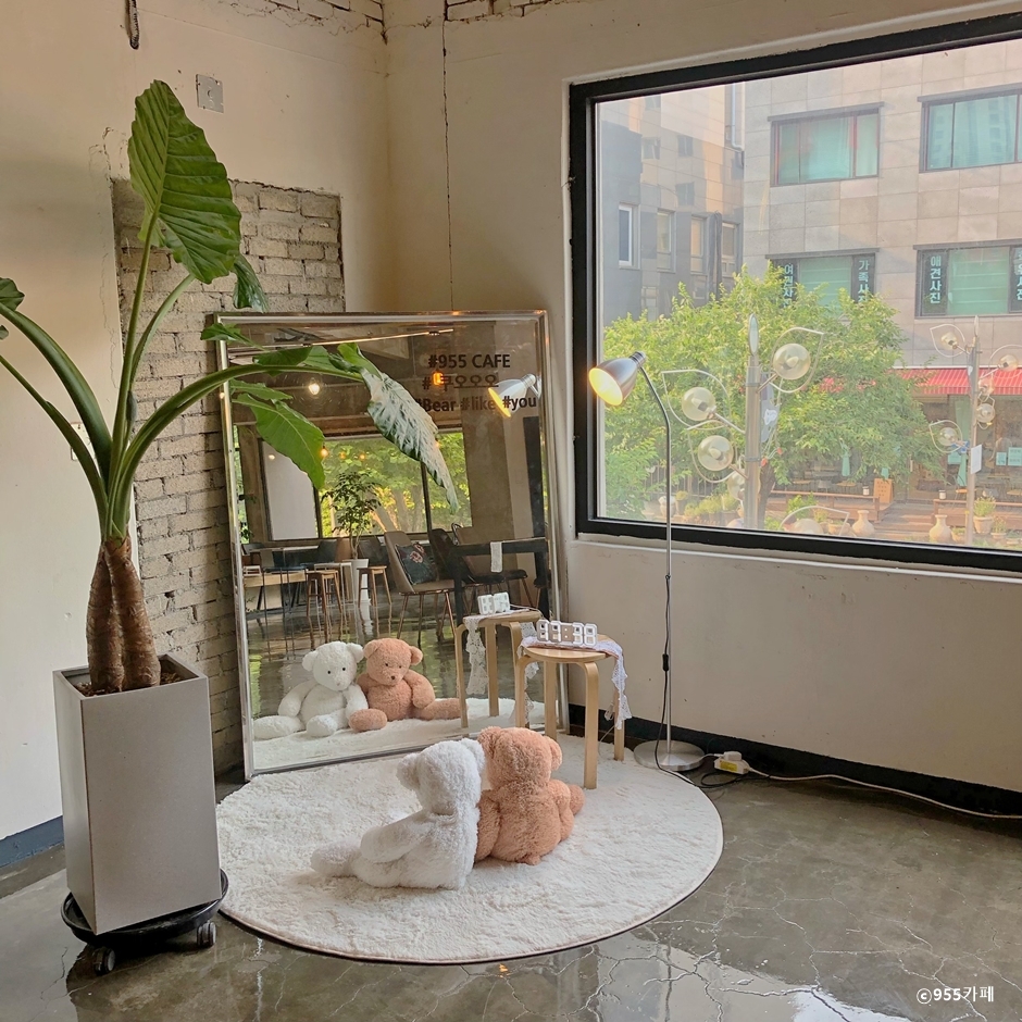 955 카페는 수원 경기아트센터 앞에 있는 카페이다. 건물 2, 3층에 있는 이곳은 1층 장어집과 같이 주차장을 사용하고 있으며 2시간 반 무료 주차할 수 있다. 천장이 노출되어 높은 층고에 통유리로 개방감 좋은 내부에는 곳곳에 식물화분을 놓아두고 아기자기한 소품들이 곳곳에 꾸며져 있다. 2, 3층과 야외 테라스 모두 테이블이 많으며 여유롭게 배치되어 있어 많은 인원을 수용할 수 있다. 이 카페는 아인슈페너, 아이리시 커피 외에도 허브티, 스무디, 에이드 등의 다양한 음료와 마들렌, 카넬레, 에그타르트 등의 베이커리가 준비되어 있다. 반려동물을 동반할 수 있는 카페로 3층 야외테라스에는 편하게 동반할 수 있고, 전용 캐리어나 가방에 반려동물이 들어가 있을 경우는 모든 실내를 이용할 수 있다. 근처 수인분당선 수원시청역이 있어 대중교통으로도 이용할 수 있다.