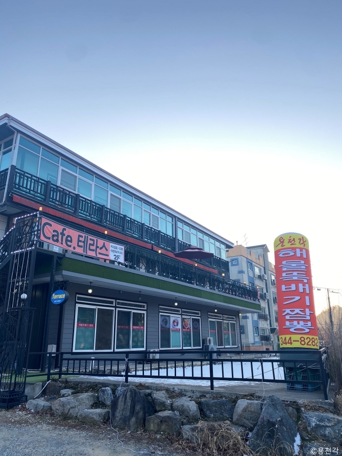 용천각은 횡성에서 뚝배기 짬뽕으로 유명한 중국집이다. 뚝배기에 낙지 한 마리, 전복 한 마리를 비롯한 다양한 해물이 푸짐한 짬뽕이 인상적이다. 뚝배기에서 너무 익어 불지 않고 면은 따로 제공되어 해물을 천천히 맛보고, 남은 국물에 면을 넣어 먹으면 된다. 일반적인 중국집 메뉴들도 다양하고, 코스 요리도 저렴한 편이라 다양하게 맛보기 좋다. 인근으로 배달도 가능하다. 가게 뒤편에 널찍한 주차장이 있어 편리하다.
