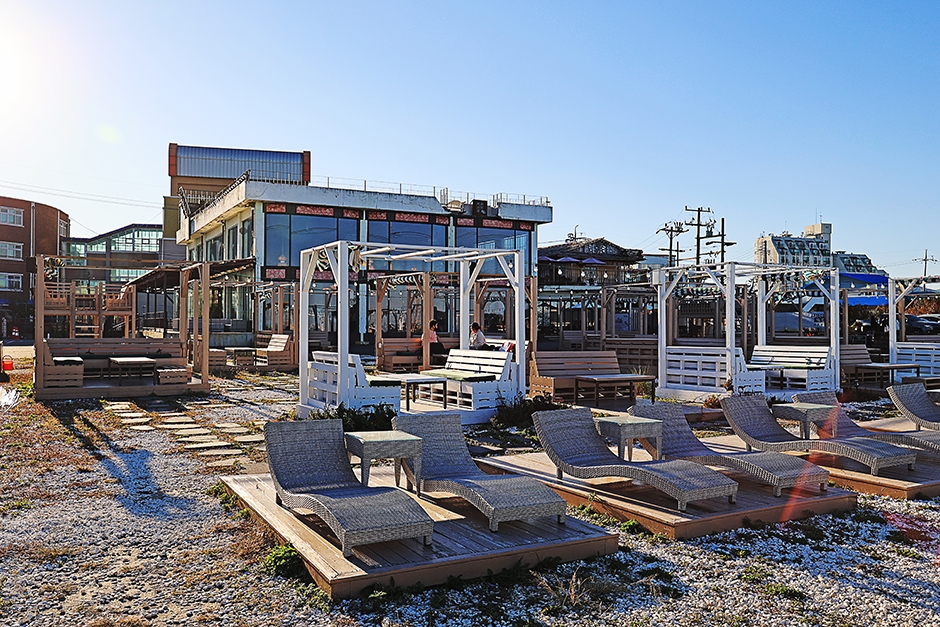 주문진 도깨비시장은 드라마 ‘도깨비’ 촬영지에서 약 100m 거리에 위치한 카페이다. MBC 예능프로그램 ‘전지적 참견 시점’에도 소개된 바가 있다. 이곳은 원래 1,700평의 오징어가미 공장이었는데, 이 공장을 그대로 살려 다양한 먹거리와 즐길 거리가 있는 곳으로 재탄생시켰다. 공간 자체만으로도 매력적인 이곳은 콩방앗간, 강냉이소쿠리, 그릴드, 푸드앤테이블 쿠킹스튜디오 등으로 구성되어 있다. 이 외에도 담소당으로 불리는 1층 개별 커플테라스와 2층의 루프탑에서 오션뷰와 노을을 감상할 수 있으며, 아름다운 조명과 인테리어로 곳곳이 모두 포토존이다.