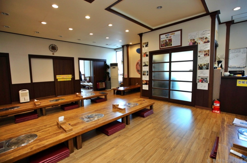 황제능이버섯백숙은 경기도 여주시 오학동에 있는 백숙 전문점이다. 단독 건물에 쾌적한 분위기의 넓은 실내와 개별 방이 있다. 대표메뉴인 특황제 해신탕은 닭 위에 문어, 낙지, 전복, 새우, 능이버섯이 가득 올라가 있다. 모든 해산물은 주문 즉시 수조에서 재료를 건져 요리해 싱싱하다. 닭은 엄선한 토종닭을 사용하고 육질이 부드럽게 잘 익혀져 나온다. 문어와 낙지는 신선해서 크게 잘라도 질기지 않고 연한 쫄깃한 식감과 고소한 맛이 난다. 새우도 살이 통통하고 능이는 쫄깃한 식감에 은은한 향이 입맛을 돋운다. 육수는 여러 가지 약재와 능이를 넣어 만든 육수로 시원하고, 구수하면서 진한 감칠맛이 난다. 메밀전병은 쫀득한 메밀에 매콤한 김칫소를 가득 채웠고, 만두도 초록색 만두피에 능이 향이 은은하고 속이 꽉 찼다. 6가지의 밑반찬은 간이 세지 않고 깔끔한 맛이 정갈하게 담겨 나온다. 남은 육수에 끓여 먹는 죽은 찹쌀과 견과류를 넣어 고소함이 더하다. 5km 이내에 호수공원, 용마폭포공원, 경춘선숲길, 문화유산인 왕릉들이 많이 있다.