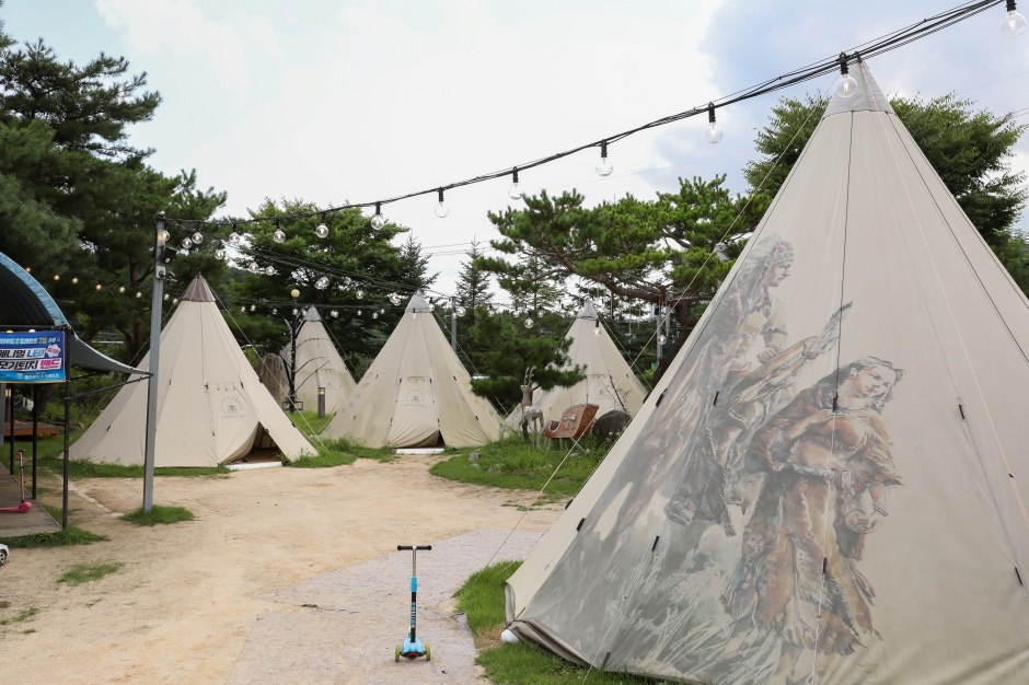 인디언독은 강원도 춘천시에 있는 캠핑 식당이다. 파오 같은 텐트를 설치해 두고 그 안에서 바비큐를 즐기는 식당이다. 실제 캠핑을 가지 않고도 캠핑을 하러 간 것과 같은 분위기를 제대로 즐길 수 있다. 어린이를 위한 놀이시설도 있고 반려동물도 동반할 수 있어 온 가족이 이용할 수 있는 식당이다. 인디언독캠프세트를 주문하면 국내산 1등급 한돈을 국내산 참나무로 2시간 이상 훈연한 돼지고기, 브리또세트(토마토 살사, 과카몰레, 사워크림, 토르티야), 새우, 파인애플, 쟌슨빌소세지, 아스파라거스, 베이컨, 야채 꼬치, 버섯이 제공된다. 예약제로만 운영하고 있고 사용 시간은 기본 2시간으로 제한된다. 인원수에 따라 30분씩 늘려 준다. 주차는 전용 주차장을 이용한다.