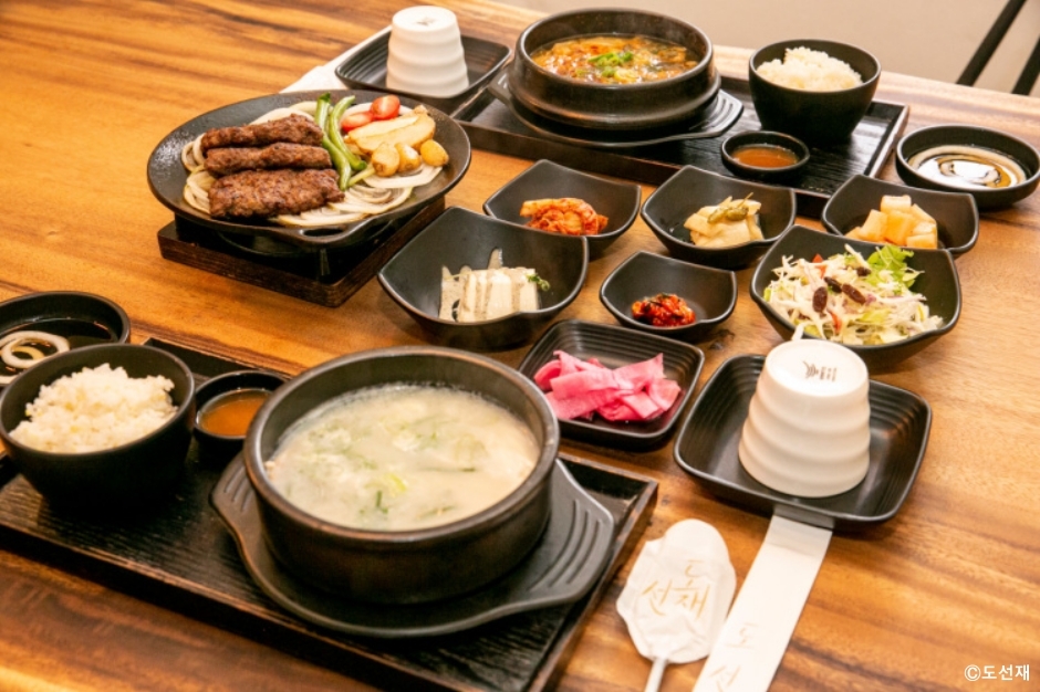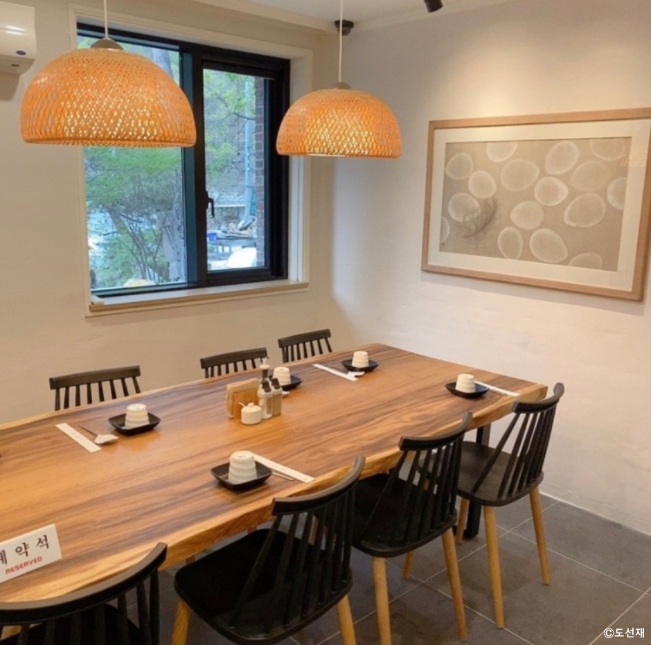 도선재는 가평군 청평에 있는 한식집으로 쁘띠프랑스에 가까이 있다. 평양 출신의 할머니가 해 주시던 집안 내림 음식 평양냉면과 담양 처가의 떡갈비를 주메뉴로 부부가 식당을 열었다. 음식을 정성껏 만든 후 가장 먹기 좋게 만들어 상에 내놓고 있다. 음식이 자극적이지 않고 맛이 있어서 아이들과 먹기 좋다. 주문하고 음식이 나올 때까지 시간이 좀 걸린다. 청평 근처 풍광 좋은 터를 잡은 식당으로, 내부는 현대적이지만 외부에서는 한옥처럼 보인다. 정원은 정성껏 가꿔 사계절의 아름다움을 모두 느낄 수 있다. 이곳에서 기르는 11마리의 고양이가 곳곳에 보인다. 많이 유명한 식당이어서 항상 대기가 있는 집이다. 대기를 하는 동안 잘 가꾼 정원을 즐기며 기다리면 된다. 널찍한 주차장은 식당 앞에 있어 주차하고 아름다운 정원을 통해 식당으로 이동하면 된다.