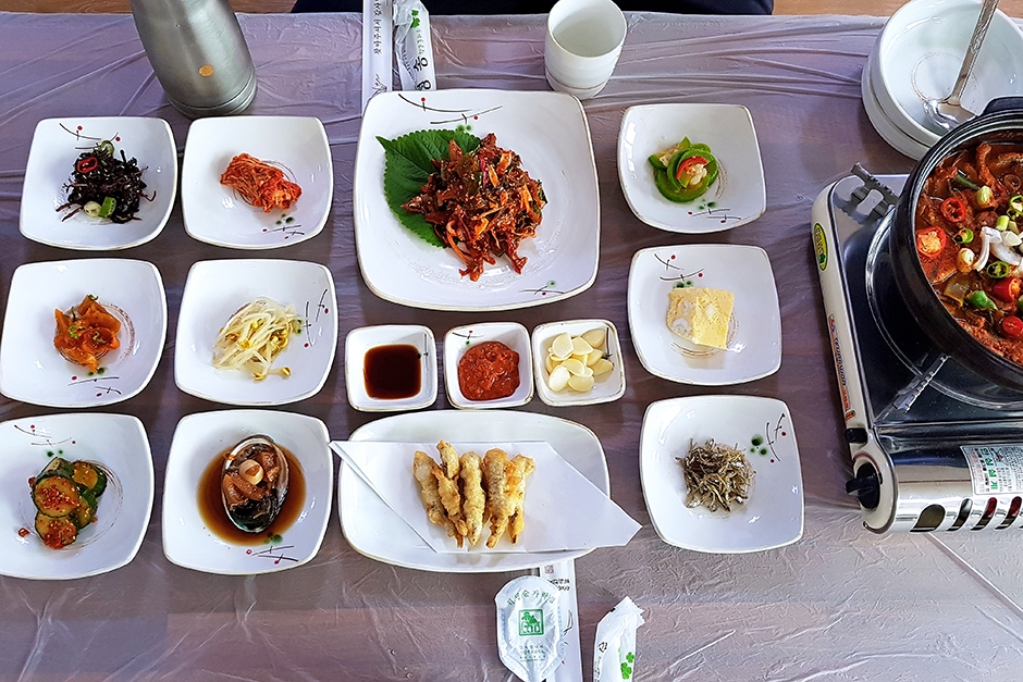 남해 그집은 남해 현지인이 추천하는 멸치 쌈밥 맛집이다. 합리적인 가격에 멸치 쌈밥과 갈치 조림, 멸치회무침 등 남해의 대표 메뉴들을 한꺼번에 즐길 수 있어 주말에는 대기자가 많다. 식당 내부는 밝고 깨끗한 인테리어에 천장에는 핑크빛 꽃들이 장식되어 마치 카페에 온 듯한 느낌이다. 주문은 테이블마다 설치된 태블릿으로 비대면 주문이 가능하다. 가장 인기가 좋은 메뉴는 그집세트A로 제주 은갈치 조림과 멸치 쌈밥 맛보기, 제주 은갈치 토막 구이, 멸치튀김 세트, 멸치 회무침, 전복장조림 등이 나온다. 이외에도 젓갈, 계란찜, 녹두전이 한 상을 가득 메워 푸짐한 한 끼를 완성한다. 멸치는 봄과 가을이 제철로, 그 외 기간에는 금어기와 수확량 감소 등을 이유로 냉동 멸치로 제공되니 참고하면 좋다.