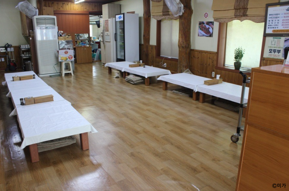 미가는 강원도 속초에 있는 황태구이 맛집이다. 서울 양양 고속도로를 빠져나오는 곳에 있어서 서울에서 일찍 출발한 여행객이 아침 식사를 하러 가기 좋은 곳이다. 아침부터 영업하는 식당이라 아침밥을 먹는 고객이 많아서 반찬이 모두 집에서 먹는 것과 같은 알찬 구성이다. 주메뉴는 황태구이 정식과 더덕구이 정식으로 황태구이와 더덕구이는 빨갛게 양념해서 불맛을 냈는데 촉촉하고 매콤 달콤한 맛이다. 황태나 더덕의 원래 맛을 간직하면서도 맛있는 양념이 잘 배어 있다. 정식에는 황탯국이 같이 나오는데 뽀얀 국물이 진국이다. 전용 주차장이 있으나 빈자리가 없으면 주변 골목이나 도로변에 주차를 할 수 있다.
