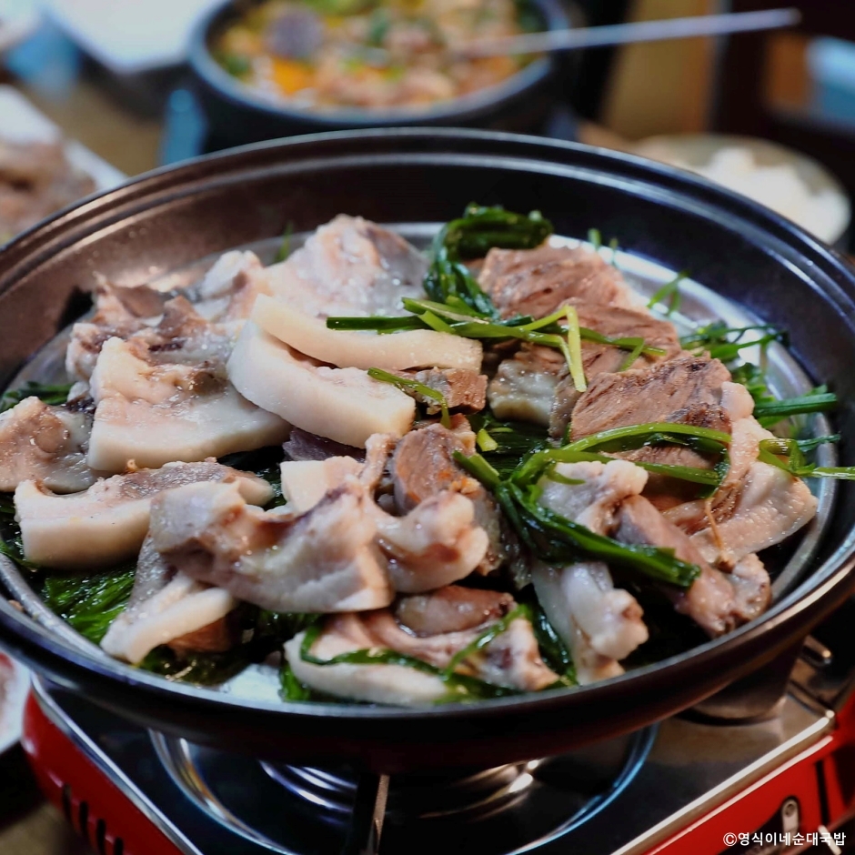 영식이네순대국밥은 강원도 속초시에 있는 순대국밥 전문점이다. 순대의 모든 것이라고 할 수 있을 만큼 다양한 순댓국을 팔고 있다. 일반 순댓국 외에 아바이순대국밥, 김치순대국밥, 모듬순대국밥, 소머리국밥, 돼지뽈살순대국밥, 돼지뽈살모듬순대국밥, 돼지뽈살김치순대국밥 등 순댓국의 종류가 다양하다. 어느 것을 주문하든 순대와 머리 고기가 푸짐하게 들어있고 국물은 진하면서도 시원하다. 속초를 여행한다면 한 끼는 꼭 먹어야 하는 음식이다. 반찬은 배추김치와 깍두기인데 순댓국과 어울리고 맛도 좋다. 부족한 것은 셀프바를 이용해서 추가하면 된다. 번화가에 있어 주차는 불가능하다. 주변 공영주차장을 이용하거나 유료 주차장에 차를 대고 방문해야 한다. 대기가 많은 식당이라 도착하면 제일 먼저 테이블 링에 예약하고 순서를 기다려야 한다.
