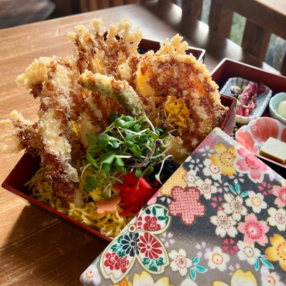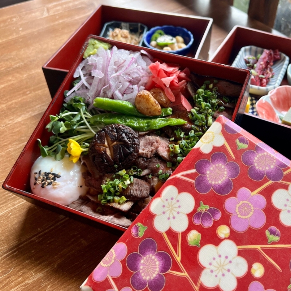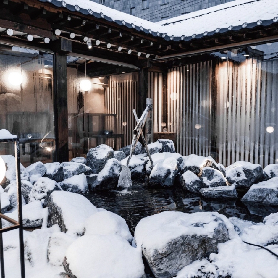 온천집은 연못과 정원을 품은 ‘중정’을 보유하고 있던 한옥 의 느낌을 살려 중정을 온천 정원으로 꾸며, 어느 방향에서도 온천을 바라보며 식사를 즐길 수 있게 설계되었다. 또한 눈이 내린 듯한 백자갈의 바닥, 매일 불을 때우는 정원 한편의 화로 거기에 이끼가 자라나는 나무 욕조 등 실제 온천 여관에 온 듯한 분위기를 충실히 재현한 것이 특징인 공간다.