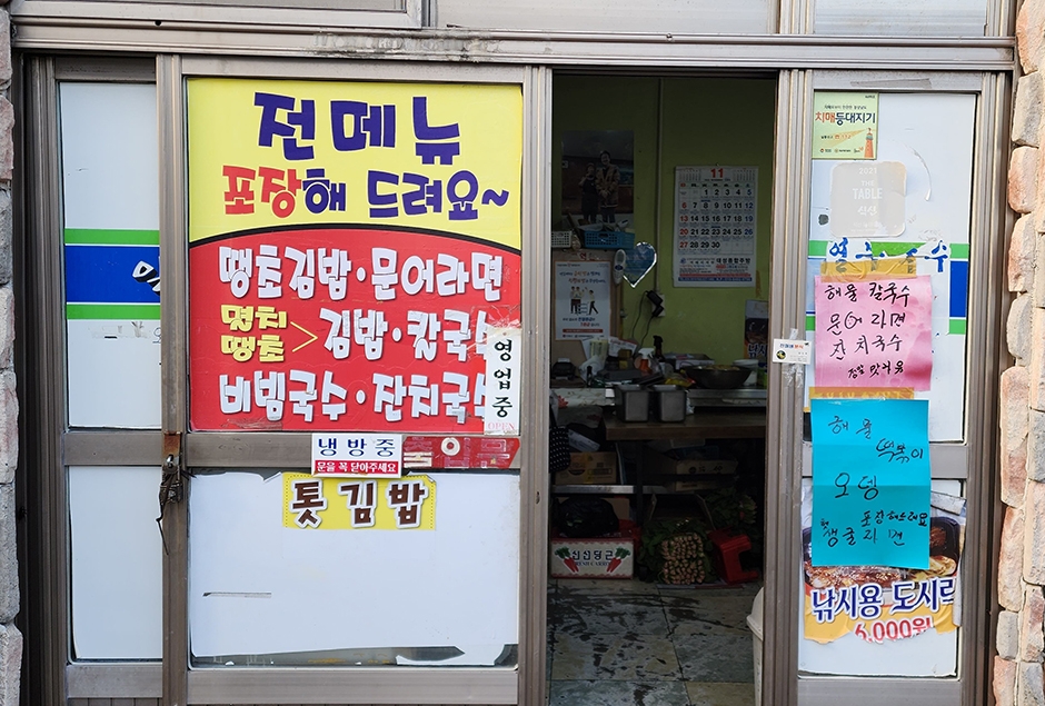거제시 일운면 지세포로에 있는 진이네분식은 여러 방송에 소개된 거제 맛집이다. 식당 내부는 세월의 흔적이 느껴지며 테이블 2개로 협소하다. 무즙과 문어, 톳을 우려낸 물로 지은 밥에 어묵, 청양고추, 고구마, 간장 등을 넣어 만든 매콤한 땡초김밥과 문어, 표고버섯, 새우, 달걀 등 다양한 재료가 들어가는 문어라면이 대표메뉴이다. 또 오독오독 씹히는 식감이 있는 톳이 들어간 톳김밥도 인기 메뉴이다.