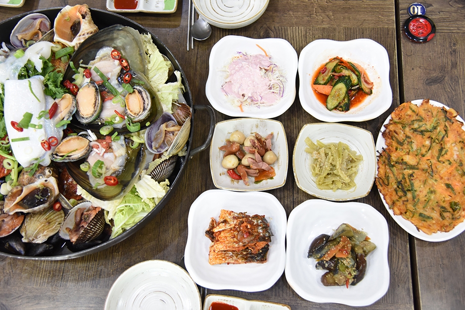 거제시 옥포동에 있는 최강달인해물천국 옥포본점은 100% 생물만 사용하는 해물찜, 탕 전문점이다. 아늑한 분위기의 가게 내부는 신발을 벗고 들어가는 좌식과 입식 테이블로 이루어져 있다. 각 테이블마다 직화 불판이 구비되어 철판, 찜, 탕 등을 따뜻하게 먹을 수 있다. 대표 메뉴는 커다란 철판에 전복, 가리비, 문어, 낙지, 갑오징어, 제철 해산물 등이 푸짐하게 나오는 생생철판이다. 해물을 다 먹은 후 남은 육수에 칼국수, 우동 등을 넣어 먹을 수 있어 별미이다. 이 밖에도 돌문어, 산낙지, 전복 삼합, 전복 뚝배기, 전복죽, 전복 물회 등 다양한 해산물 요리가 있다. 근처 걷기 좋은 옥포 공원과 수변공원이 있어 함께 둘러보기 좋다.