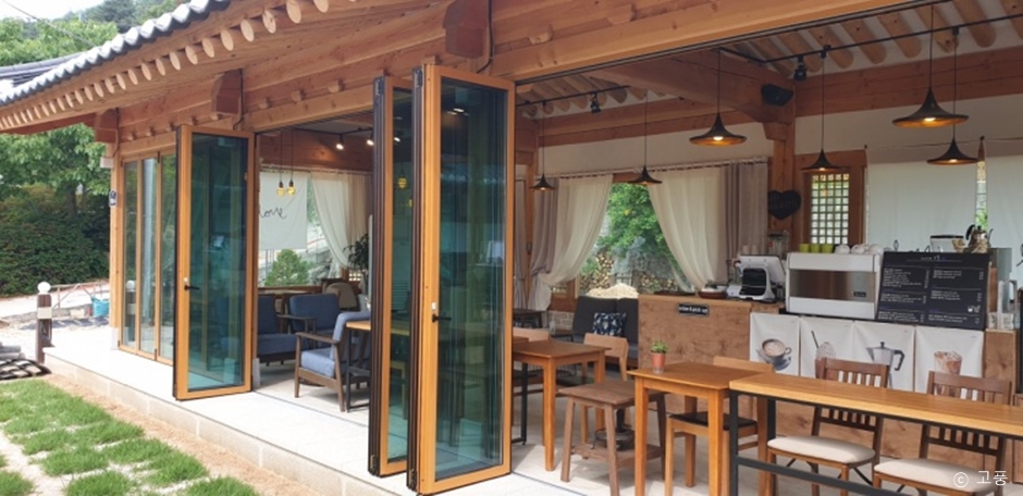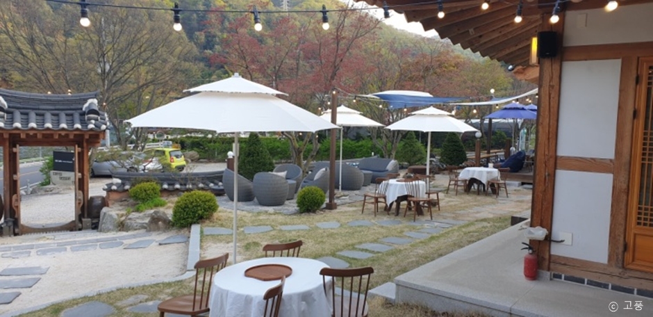 ‘고풍’은 포천시 깊이울 저수지 옆에 자리한 한옥 카페이다. 카페 앞으로 저수지가 있어 가족이나 연인과 나들이 길에 많이 찾는 곳이다. 다양한 형태로 좌석이 구성되어 있어 취향에 따라 선택할 수 있다. 실내뿐 아니라 야외 정원에도 테이블이 준비되어 있고 저수지 방향으로 캠핑 테이블이 놓여 있어 캠핑 분위기를 즐길 수도 있다. 한옥에 어울리는 조명을 설치해 밤이면 멋진 야경도 즐길 수 있다.