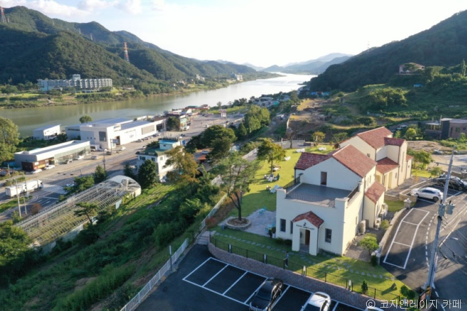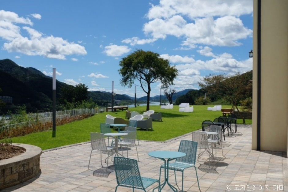 카페 ‘코지 앤 레이지’는 북한강이 한눈에 내려다보이는 가평 최고의 전망을 자랑하고 있다. 북한강과 산이 보이는 넓은 잔디 정원이 있고 곳곳에 포토존을 설치해 두었다. 실내에는 직접 만든 수제 디저트와 샌드위치, 각종 빵들이 판매되고 있어 음료와 함께 맛볼 수 있다. 2층 건물로 실내는 벽돌 인테리어를 통해 포근한 느낌이고 야외의 넓은 잔디 정원에서는 탁 트인 전경을 바라보며 휴식을 취할 수 있다. 또한 이곳은 최대 15명까지 수용가능한 단체실이 있다. 네이버 예약을 통해 미리 예약할 수 있다.