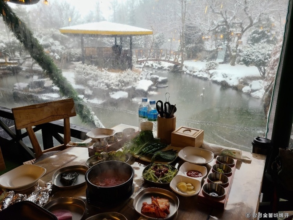 양주시에 있는 아름다운 연못, 숲으로 둘러싸여 있는 자연 공간에 문을 연 캠핑 분위기를 느낄 수 있는 레스토랑이다. 도심에서 느낄 수 없는 자연 속에서 편안하게 바비큐를 즐길 수 있다. 엄선된 고기(이베리코, 꽃 삼겹, 듀록 목살)와 함께 여러 가지 세트 구성으로 취향에 맞는 메뉴를 선택하여 푸짐하게 즐길 수 있다. 아담한 건물의 카페에서 커피도 마실 수 있다. 방문 전에 예약을 하면 더욱 정성껏 준비된 식사가 가능하다.