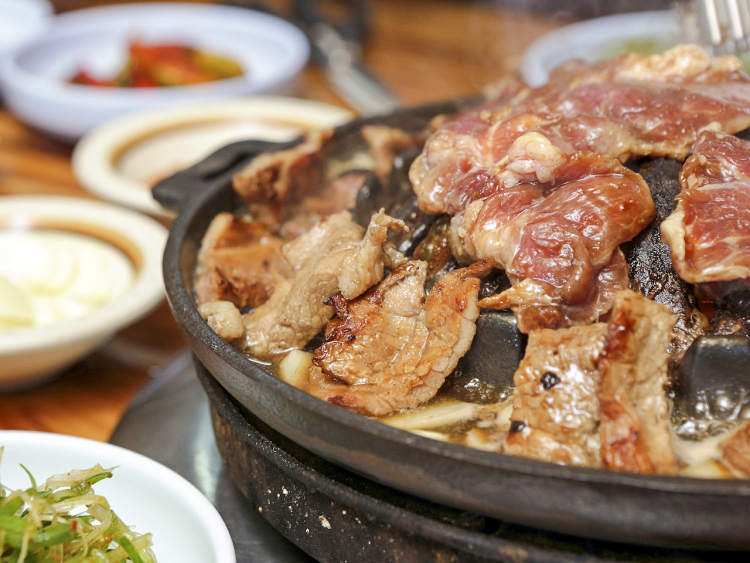 석산장은 30년째 문을 열고 있는 천안 맛집이다. KBS 2TV <생생정보>에 출연하기도 했다. 메뉴는 돼지갈비를 비롯해 된장찌개, 냉면으로 단 세 가지다. 이곳은 돼지갈비를 굽는 불판이 특이한데 돼지갈비를 구울 때 나오는 육수를 모아주는 형태다. 불판에 모인 육수에 밥을 비벼 먹는 맛이 일품이다. 내부에 단체석이 마련돼 있어 단체 모임에도 어울린다. 매주 수요일은 휴무다.