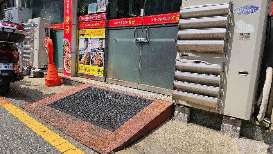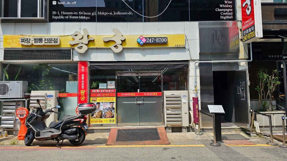 목포역 앞에 위치한 왕궁은 중국요리를 판매하는 식당으로, 짜장면, 짬뽕 등을 판매하고 있다. 특히 면발은 시금치면으로 독특한 색을 띠고 있고 밀가루면 대비 속이 편하다는 평이 많다. 짬뽕은 통오징어 한 마리가 통으로 들어가 푸짐하다. 매장이 넓고 원형 테이블도 있어 가족 및 단체 모임으로 방문하기 좋다. 주출입구는 여닫이문이긴 하나 적절한 경사로와 충분한 폭으로, 넓은 내부 공간으로 휠체어 접근이 용이하다.