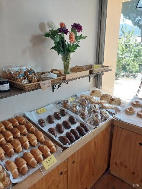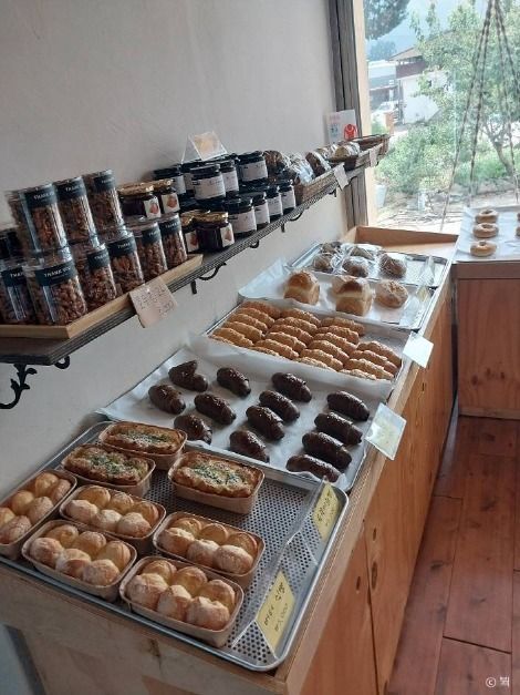 부엌을 뜻하는 이름인 우리 밀 빵집 붴은 옥천의 베이커리 카페이다. 안남면에서 직접 농사지은 밀과 유정란, 유기농 설탕만 사용하여 불편한 첨가물 없이 16시간 이상 저온 발효해 정성스럽게 빵을 만든다. 가게는 옛날 가옥을 리모델링했는데, 시골에서도 단연 눈에 띄는 느낌 있는 목조 인테리어로 발길을 잡고 매일 굽는 맛있는 빵 내음과 딸기 라떼, 오미자 에이드 등 다양한 음료로 방문자의 입맛을 사로잡고 있다. 소금빵이 대표 메뉴이며 아늑한 내부는 통창 좌석과 여러 좌석이 준비되어 있어 분위기가 좋다.
