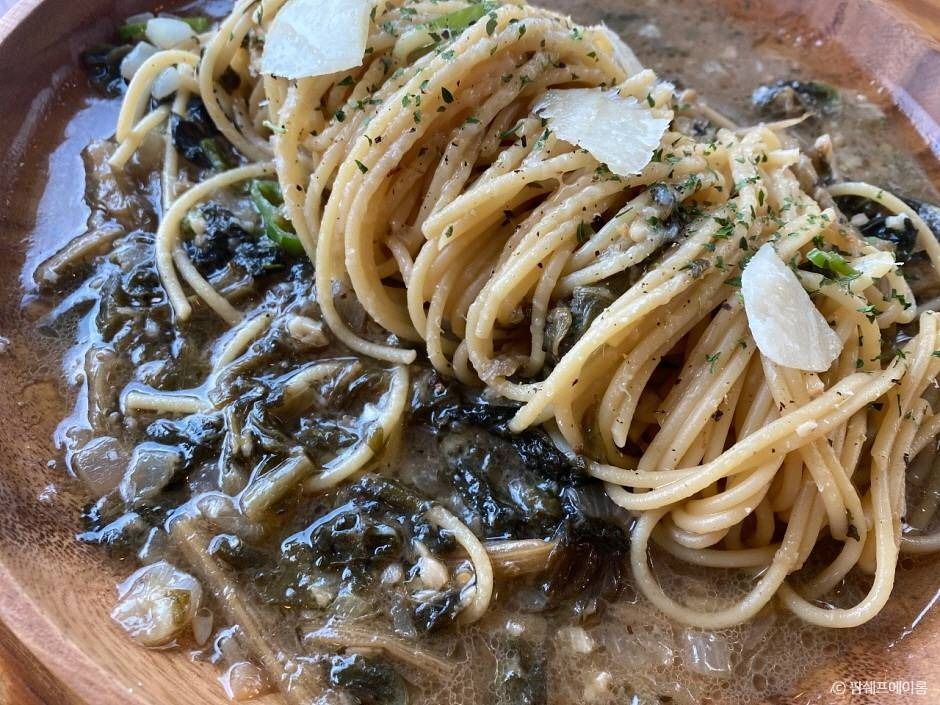 연천역 근처에 있는 팜셰프에이롬은 스파게티와 파스타 전문점이다. 계절마다 제철 식재료를 이용한 다양한 음식 메뉴가 나오며 시래기 파스타, 떠먹는 옥수수 파스타는 이곳에서만 맛볼 수 있는 특색 있는 메뉴이다. 건강한데 맛있는 한 끼로 연천 현지 주민들에게 인기가 많다. 음식뿐만 아니라 직접 농사지은 작물로 만드는 건강한 디저트와 비건 빵도 맛볼 수 있으며 대표 메뉴는 버터 스콘이다. 스콘, 비건 머핀, 쿠키 등 다양한 디저트들이 나오는데 디저트 또한 인기가 많다. 따뜻한 가정집 분위기의 매장 안에서 따뜻한 음식들을 선보이는 팜셰프에이롬은 방문자들에게 만족스러운 경험을 선사한다.