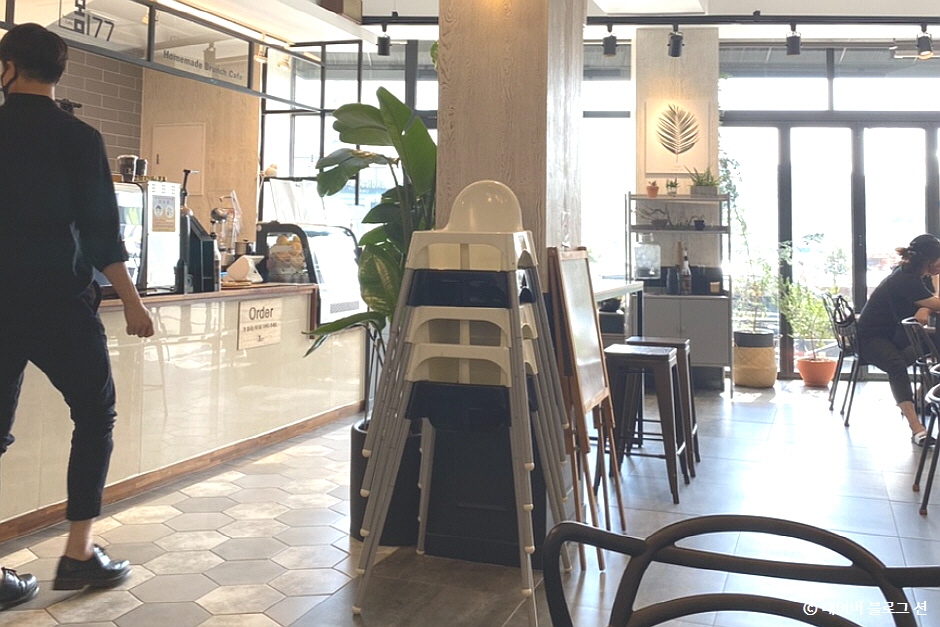 봄177은 바다가 보이는 여수 해양공원 앞 브런치 집이다. 주차는 카페 맞은편 해양공원 도로변에 하면 된다. 전체적으로 내부는 하얀 벽돌에 검은색 포인트 벽으로 이국적 느낌이 물씬 난다. 하얀 벽돌의 파티션 벽이 ㄷ자 형태로 되어 있으며, 프라이빗한 공간을 즐길 수 있는 테이블 좌석이 별도로 마련되어 있다. 아이 전용 의자도 갖춰져 있어 엄마들도 마음 편하게 방문할 수 있다. 테이블은 약 7개 정도로 아담한 카페이며 깔끔한 인테리어에 곳곳에 파릇파릇한 화분들도 많다. 모든 커피 메뉴는 에스프레소 2 샷이 들어가며 브런치 메뉴를 시키면 아메리카노가 같이 제공된다. 브런치에 사용되는 모든 빵은 12시간 저온 숙성한 반죽으로 매일 아침 매장에서 직접 굽는다.