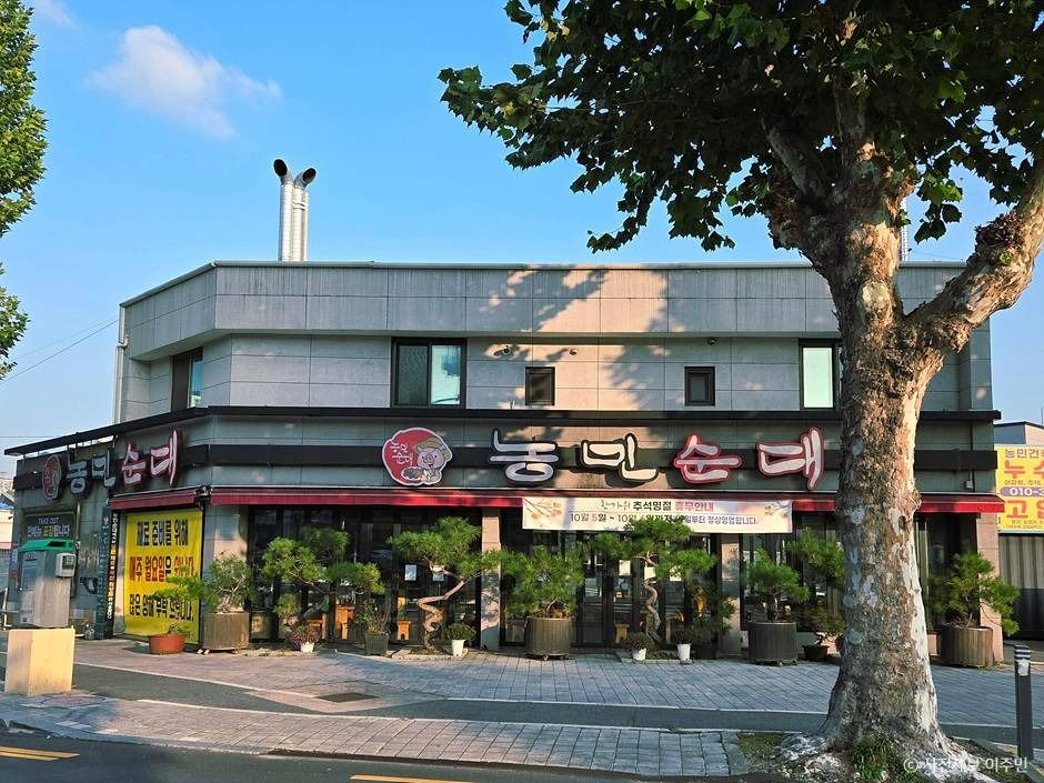 농민순대는 KBS 2TV 생생정보통 등 여러 방송에 출연한 바 있다. 이곳은 무엇보다 저렴한 가격에 맛 좋은 음식을 맛볼 수 있다는 게 장점이다. 대표 메뉴는 순대국밥이며, 이 밖에 순대, 막창구이, 내장전골, 내장볶음 등을 맛볼 수 있다. 주방이 개방되어 있어 주방에서 음식을 조리하는 모습을 볼 수 있다는 점도 특징이다. 내부에는 단체석이 마련되어 있어 각종 모임을 가지기 좋다.
