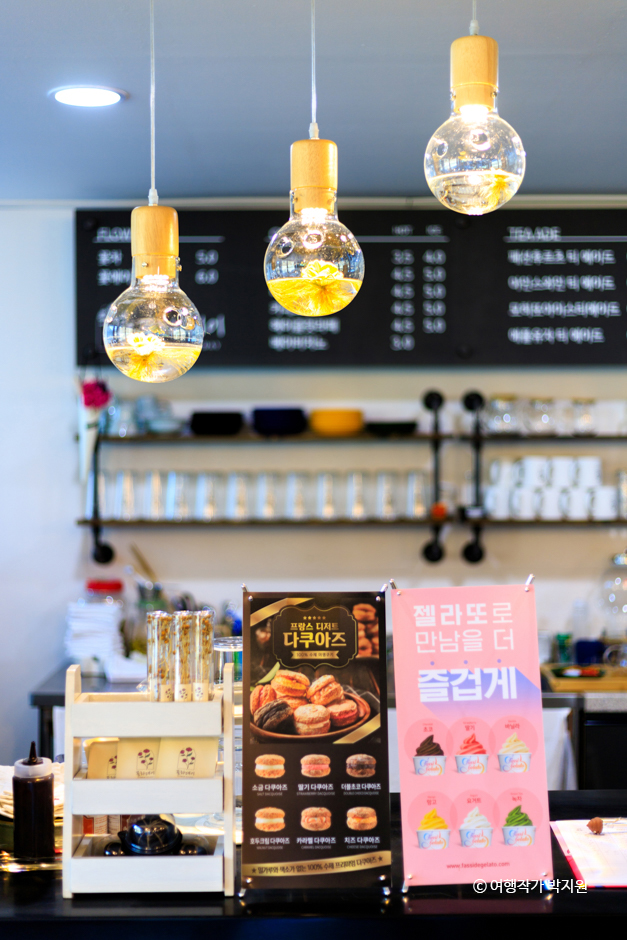 꽃차 DAY는 메리골 드꽃차, 비트차, 백연잎차, 국화차 등 꽃 차를 맛볼 수 있는 공간이다. 내부에 발을 들이면 심신이 안정을 찾는 기분이다. 밝고 온화한 분위기의 인테리어, 감각적이고 아늑한 조명, 귓가를 간질이는 잔잔한 음악, 바깥 경치가 온전히 보이는 통유리 덕택이다. 이곳에서는 꽃 차나 꽃 식초 만들기 체험도 진행한다. 7세 이상이면 누구나 가능하다. 원하는 꽃을 고른 다음 자신이 원하는 농도의 베이스를 만들어 끓인 후 용기에 담으면 끝이다. 모든 과정을 꽃차 DAY 대표가 함께하기에 어려울 것이 없다.