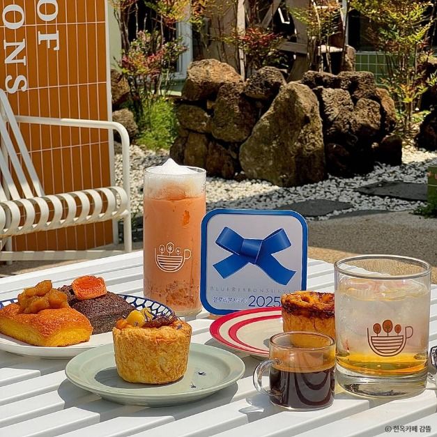 한옥카페 감뜰은 ‘감나무들이 있는 정원’이라는 의미를 가진 카페이다. 이곳은 120년 된 한옥을 리모델링해서 운영하고 있다. 한옥 건물은 카페 사장님의 할아버지께서 직접 지은 집으로 사장님이 태어나고 자란 곳이다. 예전 한옥의 구조는 그대로 유지한 채로 우드와 베이지색 베이스의 인테리어 카페로 변신했다. 관광지 근처임에도 고즈넉한 분위기를 지니고 있다. 외관과 구조는 한옥을 유지하면서도 현대적인 실내 인테리어가 요즈음 감성과 맞아떨어지는 분위기이다. 잘 가꿔진 마당과 정원에 야외 좌석을 배치해서 이용할 수 있다. 실내에는 반려동물 동반이 불가하지만, 야외 정원과 바깥사랑채는 반려동물 동반이 가능하다.