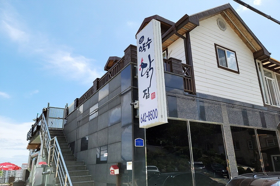 약수닭집은 여수시 국동에 있는 닭고기 숯불구이 맛집이다. 구봉초등학교 인근 산자락에 있던 식당이 지금의 자리로 옮겨 더욱 성황리에 영업 중인 곳이다. 식당 옆에 전용 주차장도 마련되어 있고 테라스 석이 있어 야경을 감상하며 식사를 하려면 예약이 필수다. 대표 메뉴인 닭구이는 토종닭에 밑간을 한 상태로 손님상에 차려진다. 전라남도 여수 밥상답게 반찬 하나하나에 손맛이 가득하며, 메뉴도 정갈하다. 숯불구이 외에 백숙, 옻닭, 닭죽이 있다. 국동항, 국동항 수변공원 등이 주변에 있어 연계 관광하기 수월하다.